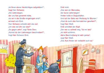 Sechs aufregende Silben-Geschichten erzählen von Abenteuern, in denen es um Einbrüche, Diebstahl, Polizeieinsätze, aber auch um ein verschwundenes Ferkel und geheimnisvolle Lichtblitze geht. Alle Wörter sind in farbigen Silben markiert. Diese kurzen Buchstabengruppen können Erstleser und Erstleserinnen schneller erfassen als das ganze Wort.