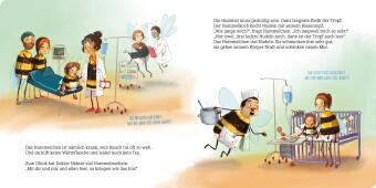 Dieses wunderschön illustrierte und gereimte Kinderbuch ist eine Hommage ans Leben. Die kleine Hummel möchte gerne fliegen. Doch das ist gar nicht so leicht mit einem dicken Pflaster und einem Schlauch am Bauch. Zum Glück hat das Hummelchen eine großartige Familie: Papa, Mama und seine beiden großen Geschwister. Mal ist das Hummelchen im Krankenhaus und dann wieder zu Hause. Dann klettert es im Wald auf Bäume, spielt Fangen und tanzt zu Musik, macht Quatsch und lacht, spaziert im Sand und Wasser am Meeresstrand. Seine Familie und Dr. Nektar setzen alles daran, dass Hummelchens großer Wunsch, fliegen zu können, Wirklichkeit wird.
