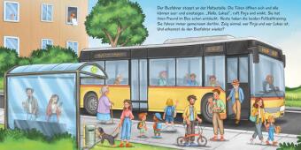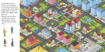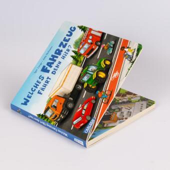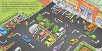 Hier können Kinder viele Fahrzeuge entdecken. Was zieht der Traktor hinter sich her? Wer steigt in den Bus? Und wo hat Papa das Auto geparkt? Hier findet jedes Kind seine Lieblings-Fahrzeug-Szene.