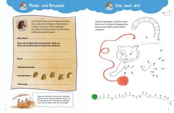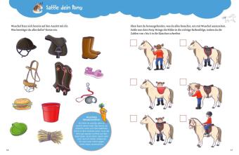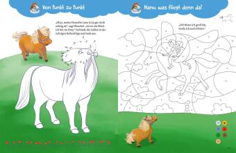 Rätseln, basteln, malen - das Mitmachbuch für kleine Pferdefans ist die perfekte Mischung aus Spiel, Spaß und leicht verständlichem Pferdewissen. Viele lustige und liebevoll illustrierte Seiten warten darauf, ausgefüllt, gerätselt und bemalt zu werden. Dazu kommen DIY-Ideen zum Nachbasteln und kurze illustrierte Geschichten zum Vor- und Mitlesen. Begleite Pony Wuschel und seine Freund_innen bei ihren Abenteuern auf dem Reiterhof.