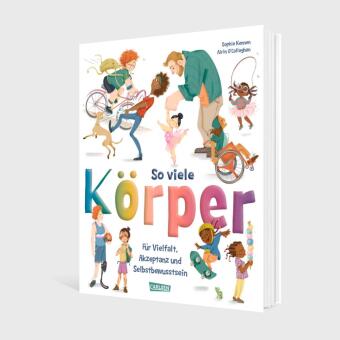 „So viele Körper“ von Sophie Kennen und Airin O’Callaghan ist ein buntes, fröhliches Bilderbuch über die Vielfalt von Körpern. Die schönen Illustrationen in Kombination mit kurzen Texten in Reimform zeigen Unterschiede in Größe, Haaren, Hautfarbe und vielem mehr, die es so gibt. Abgebildet werden außerdem Menschen mit Behinderung, verschiedenen Alters, mit Tattoos oder Brille etc.