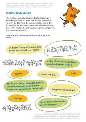 Auf geht's zu den Pferden und Ponys! Dieser Block enthält kniffelige Rätsel, lustige Ausmalbilder, tolle Bastelbögen und viele Quizfragen. Verblüffende Maus-Infos zu Reiter-Rekorden, starken Ponys oder den letzten Wildpferden bringen echte Pferdefans zum Staunen.