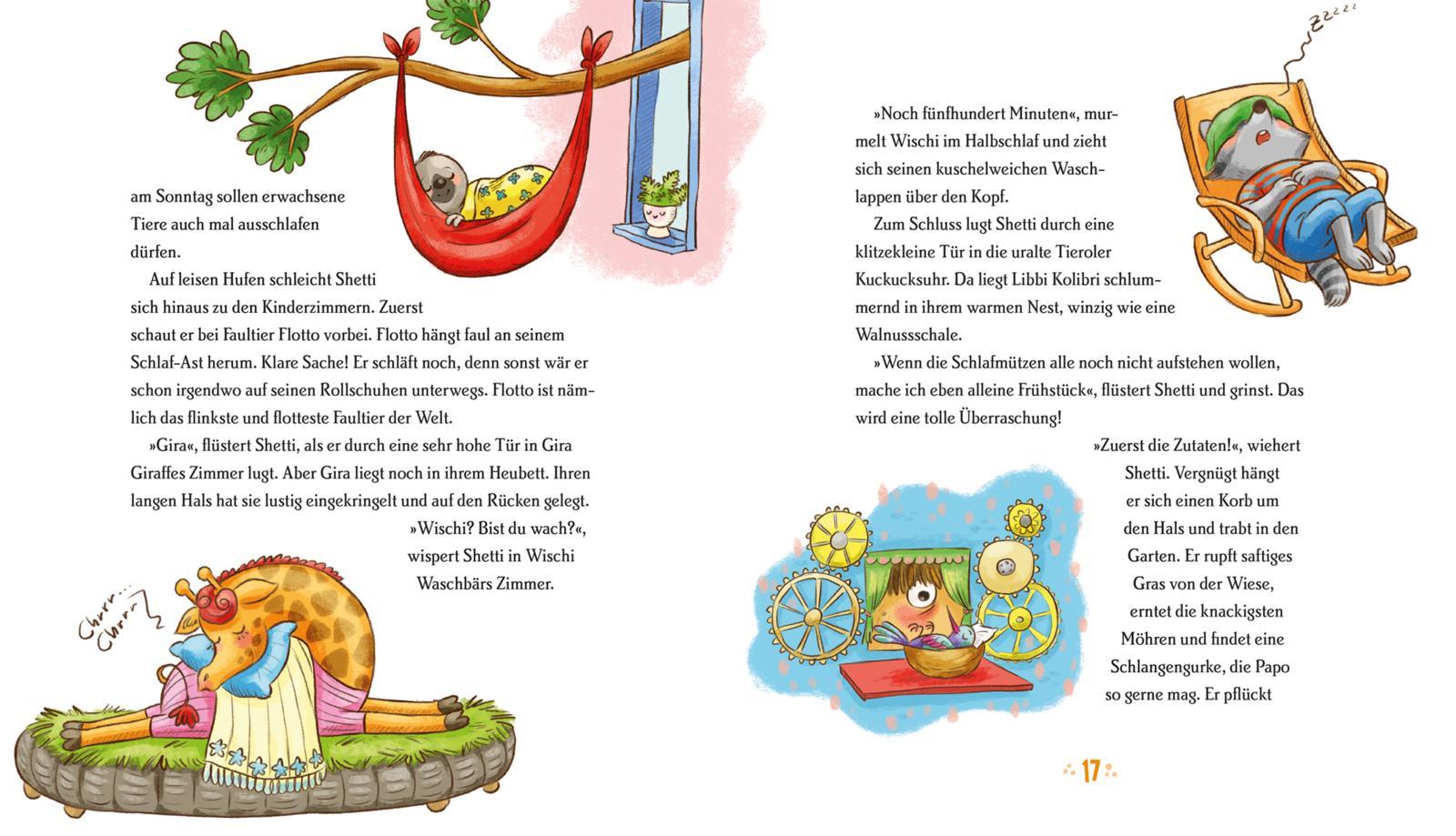 In Tierol leben tierisch viele Tiere: große Tiere, kleine Tiere, stachelige und haarige Tiere, brave Tiere, wilde Tiere ... und mittendrin steht die Villa bunter Hund. Hier wohnen Shetti, das Mini-Shetlandpony, und viele andere Tierkinder. Papo, die alte Riesenschildkröte, kümmert sich um die bunt gemischten Geschwister und gemeinsam erleben sie jede Menge lustige Abenteuer. Denn jedes Tier ist anders und kein Tag ist gleich!Warmherzige Vorlesegeschichten mit ganz viel Sprachwitz und wichtigen Themen aus dem (Tier-)Kinderalltag: Streiten, Vertragen, Teilen und Selbstständigkeit