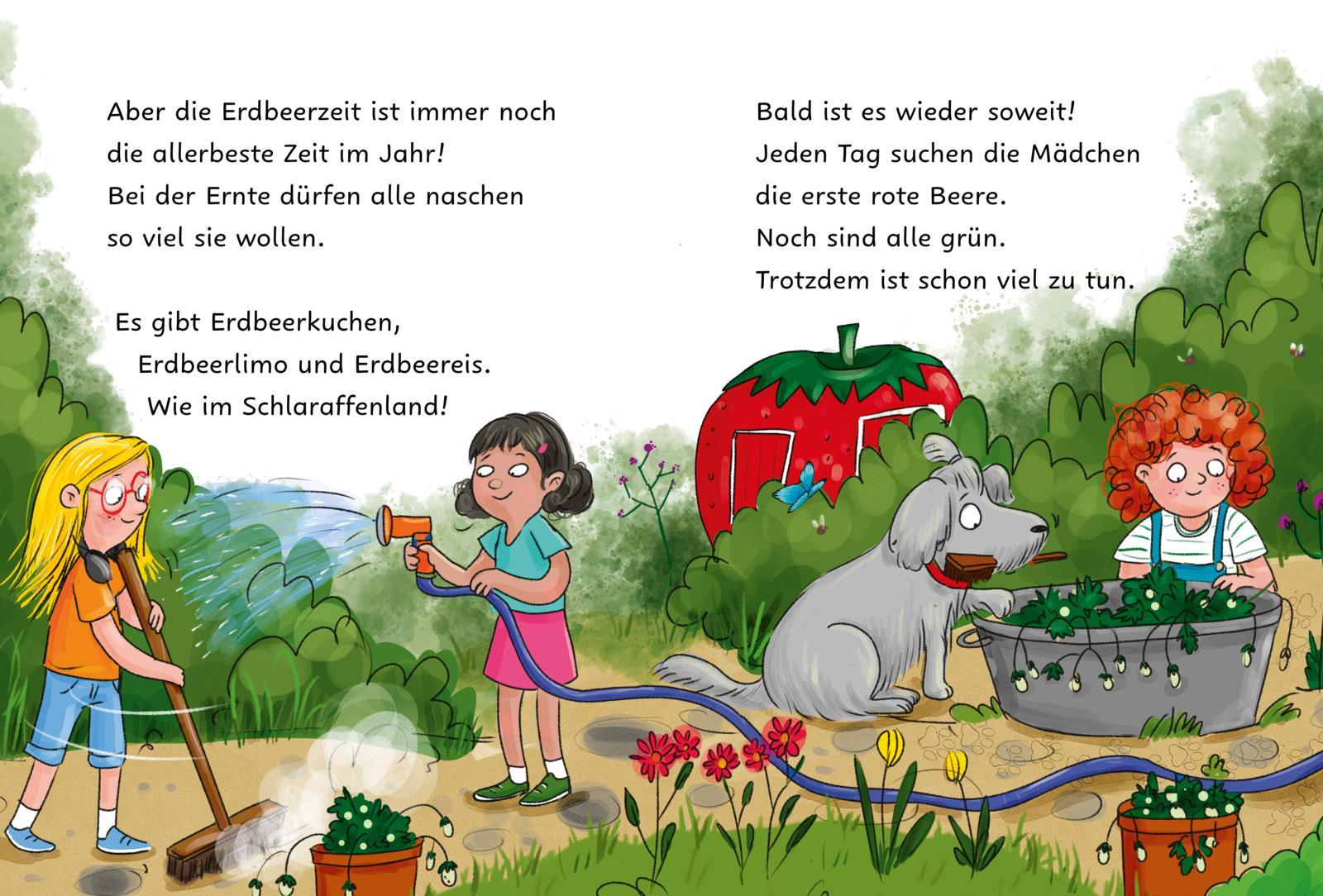Eine berührende Erstlesegeschichte über die Kraft der Freundschaft und das Zusammenleben von mehreren Generationen Gibt es einen schöneren Ort als bei Oma im Garten? Für die Freundinnen Anna, Kira und Jo jedenfalls nicht! Dort können sie sich nach Lust und Laune austoben. Vor allem der alte Erbeerwagen von Oma Irmi hat es ihnen angetan. Er ist der perfekte Ort zum Spielen und wenn die Erdbeeren in ihrem Garten rot werden, gibt es Erdbeerkuchen und Erdbeereis für alle! Die drei freuen sich schon, bis Anna erzählt, dass sie vielleicht bald umziehen muss. Und am nächsten Tag stürzt auch noch Oma Irmi und kommt für einige Zeit ins Krankenhaus. Der gemeinsame Erdbeersommer scheint verloren, doch die Freundinnen wollen nicht einfach aufgeben. Ein Plan muss her! Lässt sich mit ganz vielen Erdbeeren und noch mehr Freundschaft eine Lösung finden?