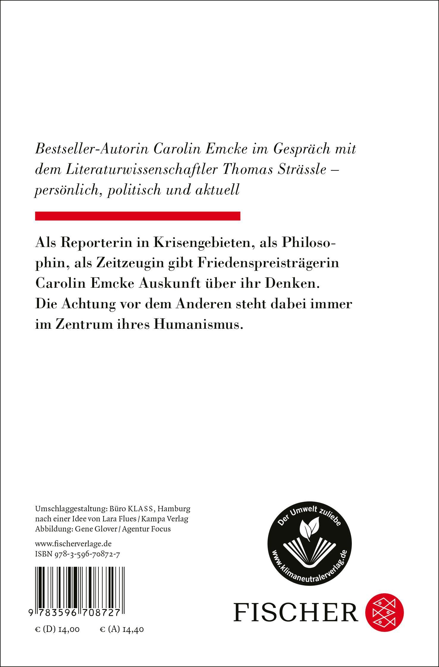 Bestseller-Autorin Carolin Emcke im Gespräch mit dem Literaturwissenschaftler Thomas Strässle - persönlich, politisch und aktuellCarolin Emcke erzählt von ihrem Werk und Leben. Sie spricht über ihre Zeit als Reporterin in internationalen Krisengebieten, berichtet vom Umgang mit Gewalt und ihrer Rolle als Zeugin. Aus Sicht der Philosophin fragt sie, wie wir Fanatismus und Hass in einer offenen Gesellschaft begegnen können. Im Zentrum ihres Denkens steht dabei stets die Achtung vor dem Anderen. Was bedeutet es, wenn Menschen ihren Glauben oder ihr Begehren nicht leben können? Dabei erzählt Carolin Emcke auch Persönliches: über prägende Texte oder ihre Liebe zu klassischer Musik.