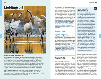 Persönlich und echt: Wir legen Wert auf ehrliche Erlebnisse, Nähe und Gegenwart Übersichtliche Gliederung in einzelne Regionen mit ihren Orten und Landschaften Lustvolle Eintauchen-und-erleben-Seiten vor jedem Kapitel Die Touren: Einfach losziehen, neue Wege gehen. Aktiv in Natur und Kultur eintauchen Die Lieblingsorte: gut für überraschende Entdeckungen Die Adressen: radikal subjektive Auswahl, mal stylish, mal ökologisch, immer individuell und persönlich Das Magazin: ein abwechslungsreiches Reisefeuilleton. Es packt auch kritische und kontroverse Themen an ... Die Karten: 8 Citypläne, 16