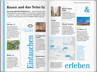 Natur und Kultur eintauchen Die Lieblingsorte: gut für überraschende Entdeckungen Die Adressen: radikal subjektive Auswahl, mal stylish, mal ökologisch, immer individuell und persönlich Das Magazin: ein abwechslungsreiches Reisefeuilleton. Es packt auch kritische und kontroverse Themen an ... Die Karten: 8 Citypläne, 17 Tourenkarten, Übersichtskarte mit den Highlights der Normandie, Schnellüberblick zu jeder Region plus eine separate Reisekarte