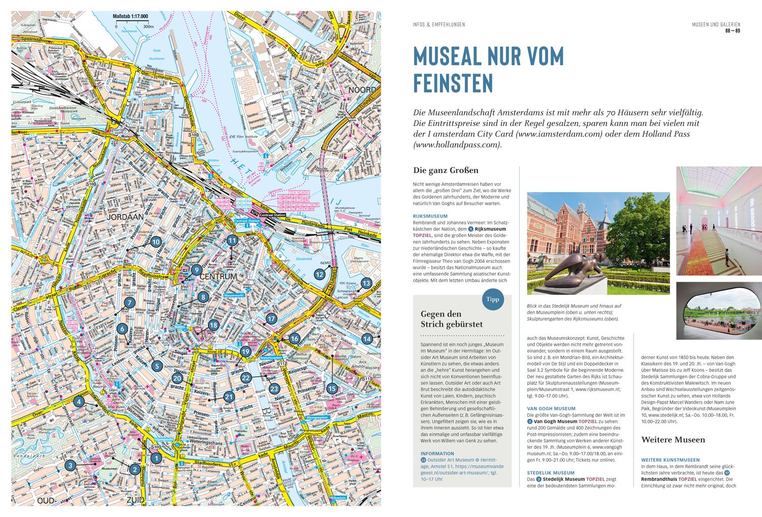 Mit dem DuMont Bildatlas Amsterdam in die Stadt der Radler, Grachten und Museen Die niederländische Hauptstadt ist eine wahre Wundertüte für Reisende. Egal ob Sie ihr nur einen kurzen Wochenendbesuch abstatten oder mehrere Wochen bleiben, langweilig wird es hier nie. Amsterdam begeistert mit malerischen Grachten wie mit moderner Architektur, ist Anziehungspunkt für Kulturfans und zugleich erste Adresse für Nachtschwärmer in Feierlaune. Mit dem DuMont Bildatlas entdecken Sie die schönsten Orte der Stadt und erleben, was die Metropole nicht nur für Radfahrer so anziehend macht.- Die besten Ideen für Ihre Reiseplanung auf einen Blick: spannende Kulturerlebnisse, große Kunst und bunte Natur- Besondere Highlights der Stadt entdecken: unsere Favoriten für Terrassenlokale, Mikrobrauereien und Concept Stores- Amsterdam natürlich erleben: nachhaltig Reisen mit umweltfreundlichen Unternehmungen- Die schönsten Erinnerungen zum Mitnehmen: Tipps für Souvenirs, Erfahrungen und Erlebnisse- Nachtleben ohne Sperrstunde, neue Stadtteile auf dem Wasser und die internationalste Hauptstadt der Welt: die Eigenheiten Amsterdams kritisch betrachtet Amsterdam perfekt im Überblick: Informatives Reisemagazin mit faszinierenden Fotos Der DuMont Bildatlas vereint das Beste aus informativem Reiseführer und spannendem Reisemagazin. In sechs umfangreichen Kapiteln werden bemerkenswerte Aspekte der Stadt beleuchtet. Autorin Susanne Völler berichtet über das Leben im denkmalgeschützten Grachtengürtel und die neuen Viertel mit ihrer modernen Architektur. Auch Abstecher in die ehemaligen Arbeiterquartiere am IJ, die vielfältige Kulturszene und das Nachtleben der Metropole werden unternommen. Und wenn die Großstadt zu viel wird, lädt das Umland zum entspannten Erkunden und Windmühlenzählen ein. Die schönsten Sehenswürdigkeiten und Ausflugsziele werden am Ende jedes Kapitels übersichtlich zusammengefasst und im Cityplan verzeichnet, die abschließenden Serviceseiten enthalten allgemeine Reiseinfos von A bis Z. Mit dem Amsterdam-Reiseführer von DuMont sind traumhafte Urlaubsmomente garantiert!