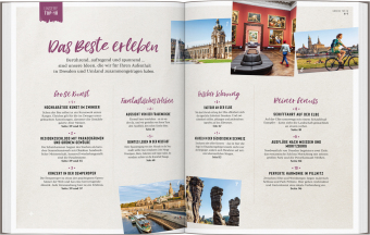 e Favoriten: Herrliche Parks und Gärten, die schönsten Freisitze und Terrassen, die besten Seen und Bäder für warme Sommertage Stand-up-Paddling auf der Elbe, Wandern zwischen Weinbergen und im Elbsandsteingebirge oder die Jeans nach Maß aus der Hinterhof-Werkstatt: Tipps für Abenteuer in der Natur und nachhaltige Ausflüge Unvergessliche Momente und besondere Souvenirs: Erinnern Sie sich an Ihren Urlaub mit Eierschecke, Weinen aus dem Elbtal oder dunkelroten Kamelien DUMONT Zur Sache: Im Steinlabor den Sandstein unter die Lupe nehmen, ein Besuch auf einem Weingut und mit dem Kapitän auf der Elbfähre fahren