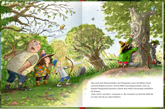 KRAWUMMMMM ... hallt es durch den Donnerwald! Gefährliche Räuber sollen dort hausen. Deshalb sieht man auch selten jemanden hineingehen und noch seltener jemanden wieder herauskommen. Robin aber traut sich trotzdem hinein - und wird prompt von der wilden Bande gefangen genommen. Doch gewitzt, wie er nun mal ist, fordert er die weniger gewitzten Räuber zu einem Wettstreit heraus. Hauptmann Donnerpups lässt sich jedoch gar nicht gern an der Nase herumführen!Ein pupsgeladenes Abenteuer in einer schrecklich wilden Räuberwelt