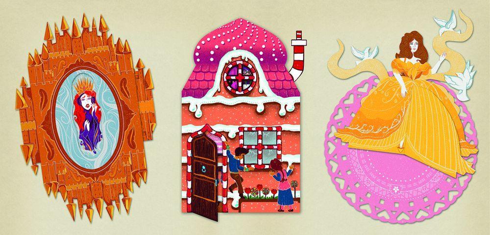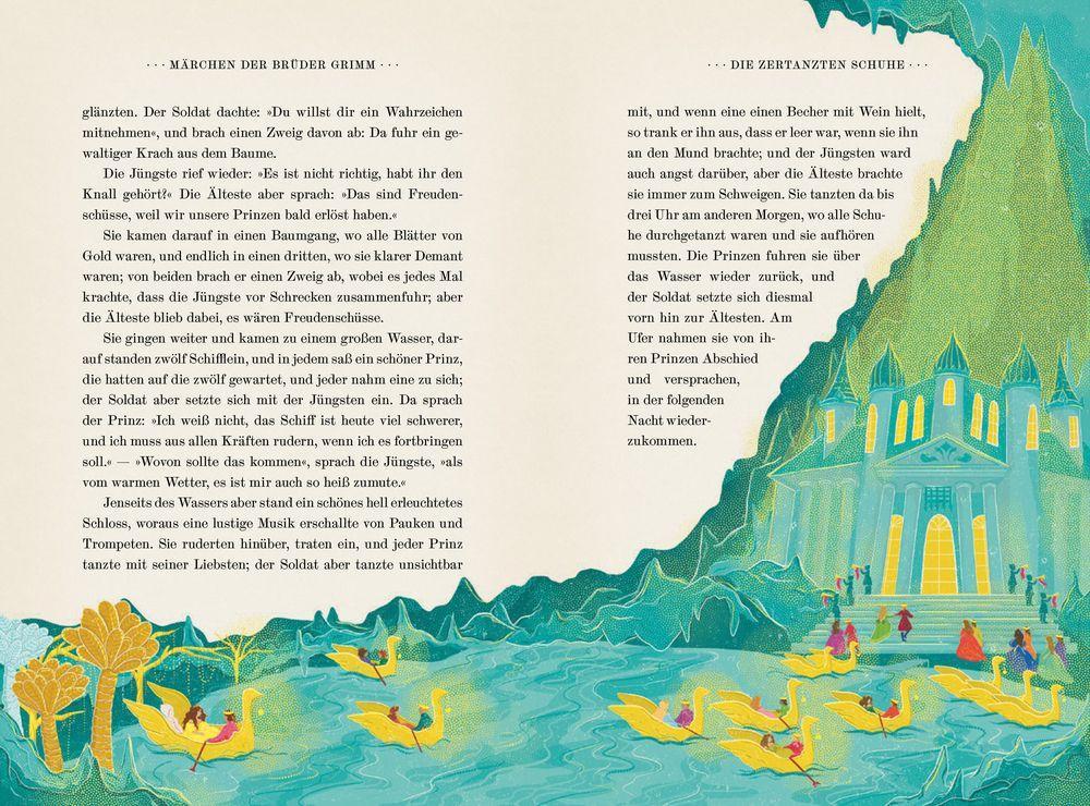 Prächtig in Szene gesetzt von den Harry-Potter-Designern MinaLima, mit vielen interaktiven 3-D-Extras wie ein Zauberspiegel zum Schieben, ein Knusperhäuschen zum Aufklappen, ein tanzendes Aschenputtel, ein Pop-up-Rapunzelturm und viele mehr.
