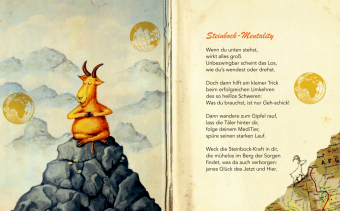 Dazu müssen wir nicht verreisen oder eine Yogastunde nehmen. Also lass dich inspirieren von den MediTieren, vom Sound der heiteren Texte und von der Magie der liebenswerten Illustrationen.