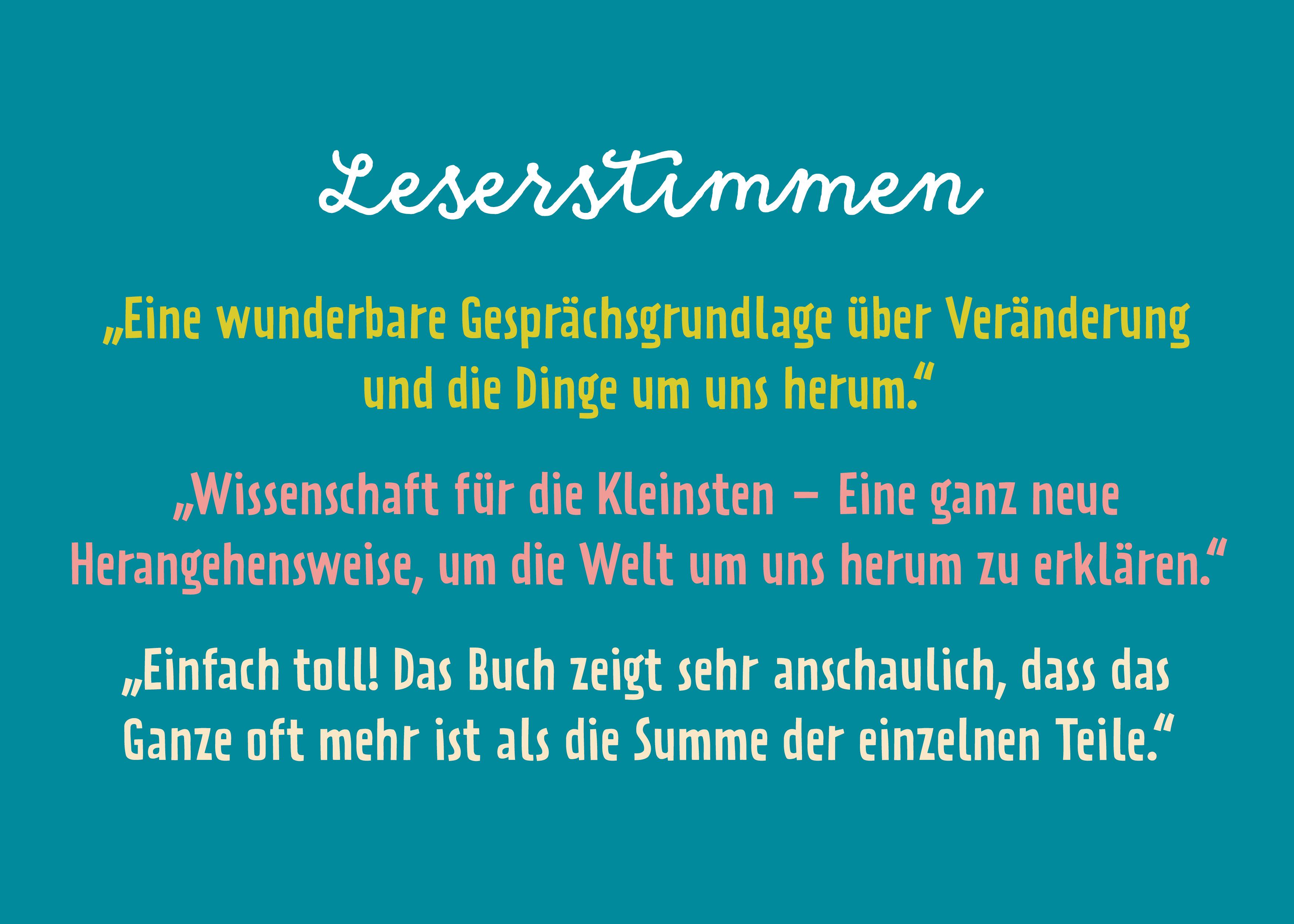 Veränderung gehört zum Leben und umgibt uns überall. Dieses Buch erklärt spielerisch, wie die Dinge dieser Welt miteinander verbunden sind. Nichts geht je verloren, sondern wird einfach zu etwas Neuem - Wir müssen nur genau hinschauen.Schlaue Köpfe wissen mehr ...Sonne und Regen ergibt einen Regenbogen, Wasser und Erde ergibt Matsch oder Blau und Gelb ergibt Grün... - Die Natur hat ihre ganz eigene Mathematik - und dieses besondere Kindersachbuch zeigt, wie sie funktioniert. Mit leicht verständlichen Erklärungen und farbenfrohen Illustrationen lassen sich schon die Kleinsten für Naturwissenschaft begeistern, um so die Welt ein Stück verständlicher zu machen.Produktinformationen:- Veränderung passiert überall - die perfekte Gesprächsgrundlage- fördert Neugier und abstraktes Denken- einfacher Aufbau mit großen Illustrationen- leichte und verständliche Erklärungen mit alltäglichen Beispielen- für Kindergarten und Vorschule- Kindersachbuch für Mädchen und Jungen ab 3 Jahren- gebundene Hardcover-Ausgabe, hochwertig produziert auf stabilem Naturpapier, ideal für Kinderhände Leserstimmen:"Eine wunderbare Gesprächsgrundlage über Veränderung und die Dinge um uns herum.""Wissenschaft für die Kleinsten - Eine ganz neue Herangehensweise, um die Welt um uns herum zu erklären.""Einfach toll! Das Buch zeigt sehr anschaulich, dass das Ganze oft mehr ist als die Summe der einzelnen Teile."