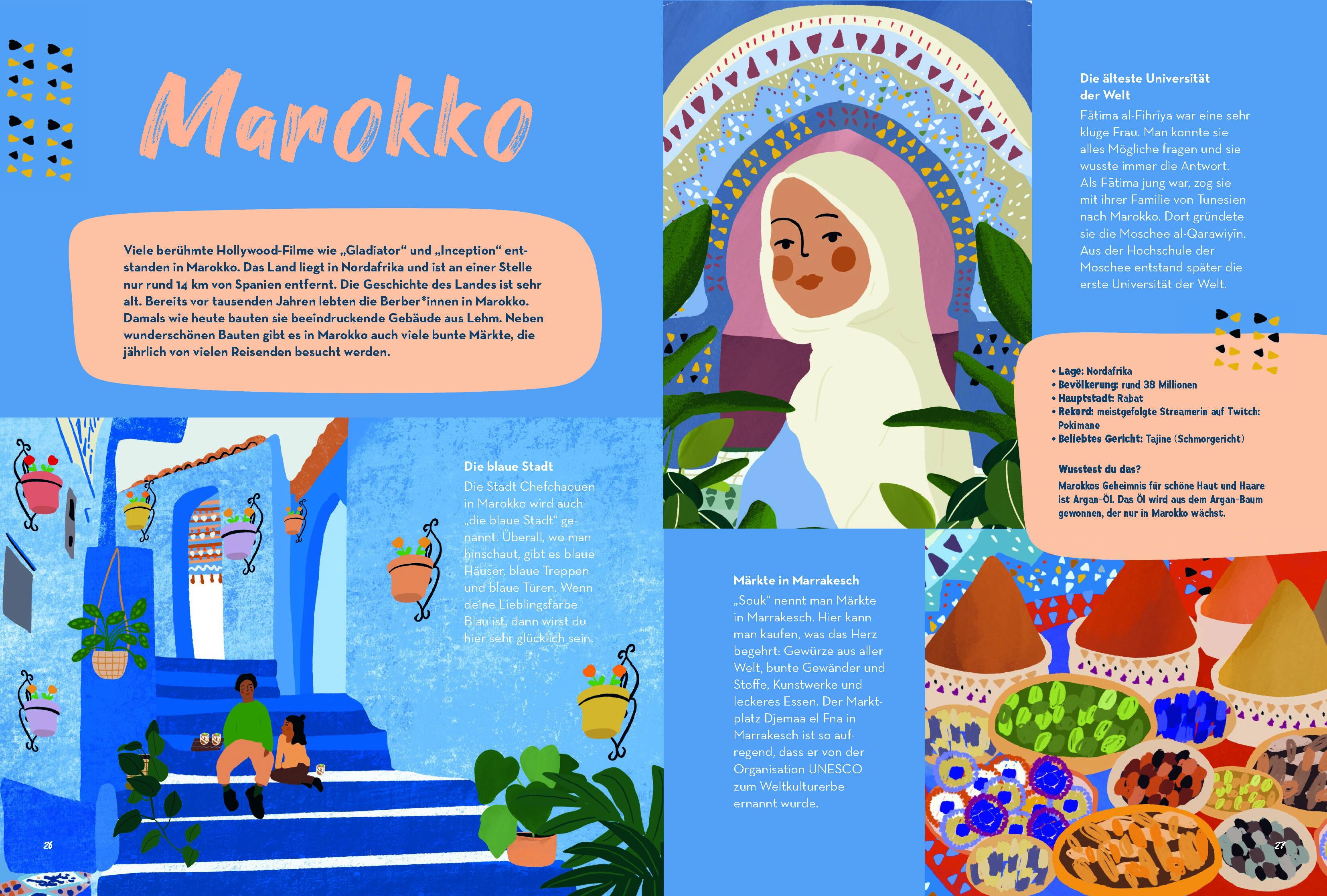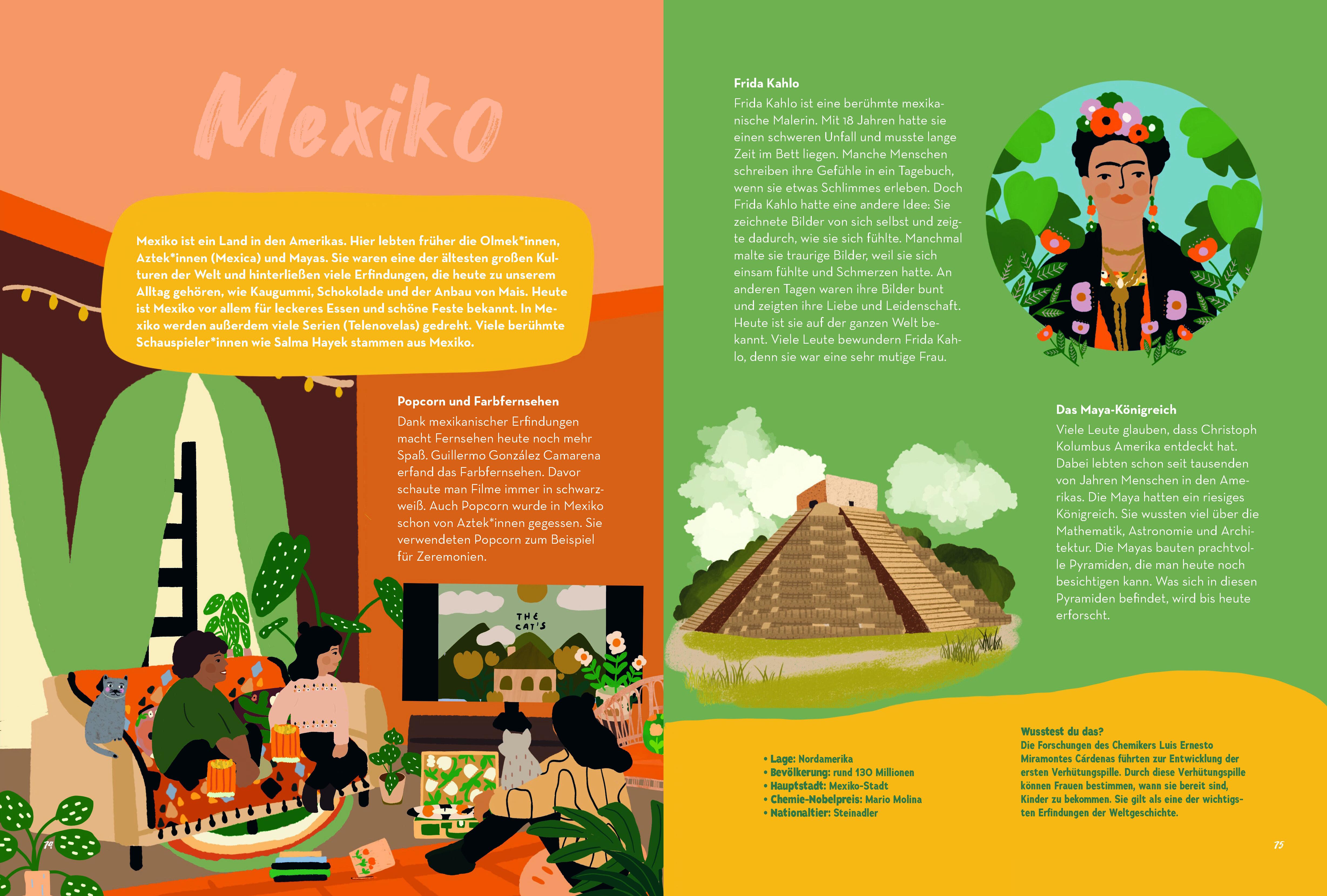 Schlechte Nachrichten über Afrika oder Asien bekommen wir oft zu hören. Aber wusstest du, dass Ruanda weltweit die meisten Frauen im Parlament hat, die ältesten Ölgemälde der Erde in Afghanistan gemalt wurden und das Farbfernsehen in Mexiko erfunden wurde? Über jedes Land gibt es Gutes zu berichten, überall auf der Welt leisten Menschen Großartiges. Trotzdem werden manche Länder bis heute in Schulbüchern und Medien einseitig und negativ dargestellt. Nicht in diesem Buch!Folgt uns von Syrien über die Türkei nach Nigeria, Somalia und Syrien, entdeckt vergessene Königreiche, Musiker*innen, Erfindungen und Feste. Ihr werdet die Welt mit neuen Augen sehen.