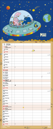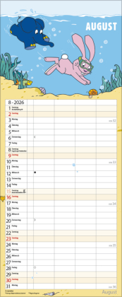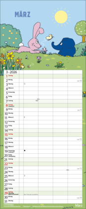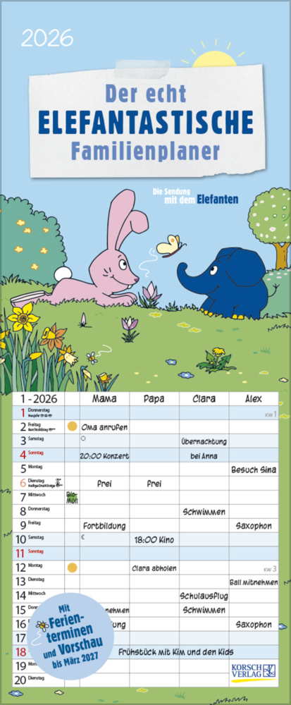 Die Sendung mit der Maus und ihre Charaktere kennt jeder. Jetzt feiert der kleine blaue Elefant Geburtstag ? und zwar den 50sten! Zeit, ihn endlich einmal separat zu würdigen. Dieser farbenfrohe Familientimer mit 4 Spalten zum Eintragen setzt das Geburtstagskind liebevoll in Szene. Happy Birthday, blauer Elefant! Mit Ferienterminen und Vorschau bis März des Folgejahres.