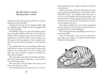 Eines Nachmittags trifft ein Löwe mitten im Urwald einen seltsamen Reisenden: einen Hund, der über und über mit bunten Zeichnungen bedeckt ist. «Jedes dieser Bilder bedeutet eine Geschichte», erklärt der tätowierte Hund. Nachdem er sich ein wenig hat bitten lassen und vom neugierigen Löwen ein dickes Leberwurstbrot bekommen hat, verwandeln sich die Bilder auf seiner Haut . . .