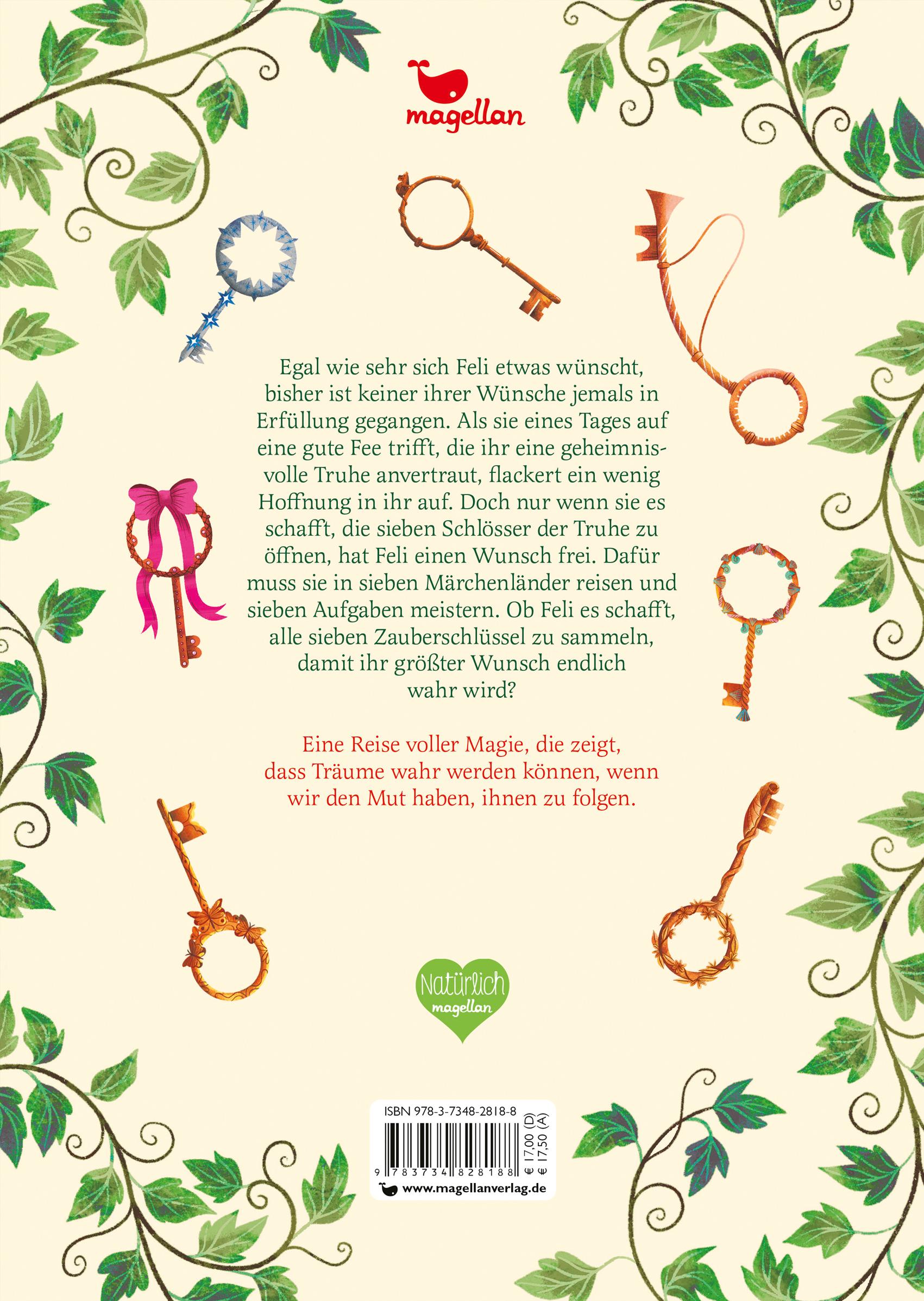 Egal wie sehr sich Feli etwas wünscht, bisher ist keiner ihrer Wünsche jemals in Erfüllung gegangen. Als sie eines Tages auf eine gute Fee trifft, die ihr eine geheimnisvolle Truhe anvertraut, flackert ein wenig Hoffnung in ihr auf. Doch nur wenn sie es schafft, die sieben Schlösser der Truhe zu öffnen, hat Feli einen Wunsch frei. Dafür muss sie in sieben Märchenländer reisen und sieben Aufgaben meistern, um die passenden Schlüssel zu finden. Ob Feli es schafft, alle sieben Zauberschlüssel zu sammeln, damit ihr größter Wunsch endlich wahr wird?