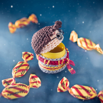 Die Erfolgsgeschichte rund um die Überraschungs-HäkelEi geht weiter. Tauchen Sie ein in die magische Welt rund um den beliebtesten Zauberschüler aller Zeiten und häkeln Sie neben Harry Potter, seine Freunde, Gegenspieler und ihre tierischen Begleiter sowie magische Gegenstände nach. Dafür braucht es nur Kapseln von Schokoeiern, Garnreste, eine Häkelnadel, etwas Zeit und ganz ohne Zauberspruch entstehen die witzigen Kerlchen.