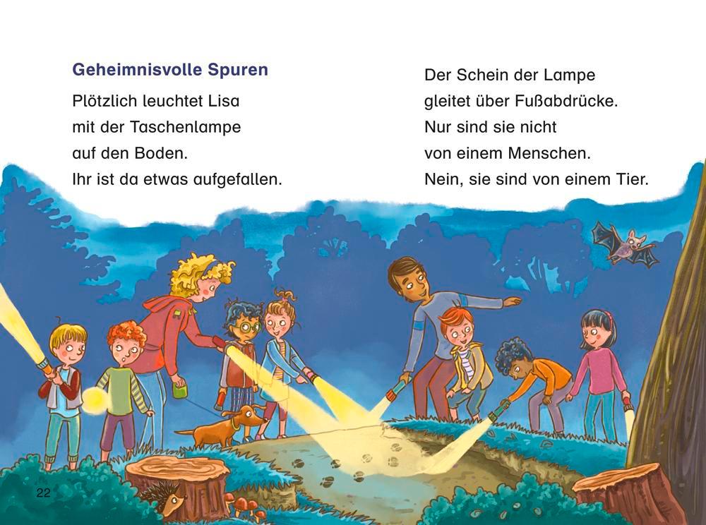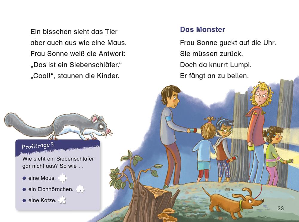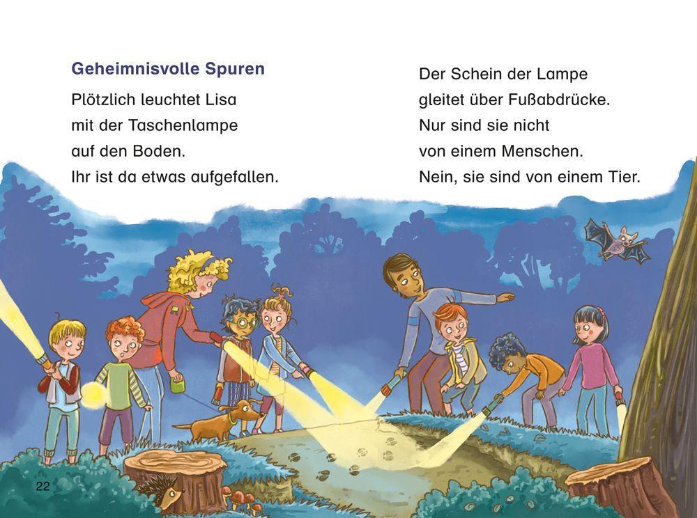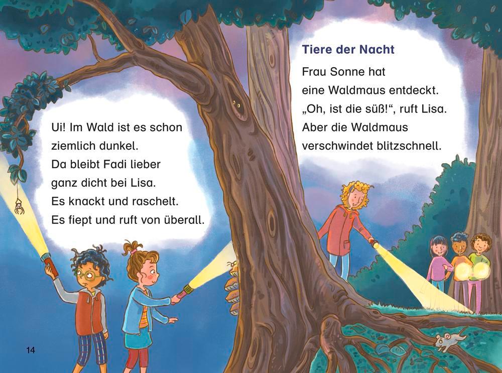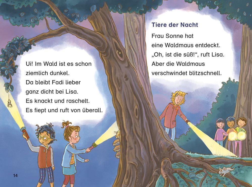 Spannender Lesespaß für Grundschulkinder ab 6 Jahren!Juhu, letzter Schultag mit Sommerfest, Lagerfeuer und Stockbrot! Und zur Krönung macht die ganze Klasse eine Nachtwanderung im Wald - wie cool! Das findet Fadi aber gar nicht, denn ihm ist mulmig zumute. Außerdem soll es im Wald ein gruseliges Monster geben ... Zum Glück sind Lisa, Dackel Lumpi und die Eltern dabei. Gemeinsam entdecken sie viele Tiere der Nacht, lauschen spannenden Geräuschen und verfolgen interessante Spuren. Etwa die des Monsters? Duden - von Anfang an richtig! Lesenlernen leicht gemacht: Erstlesespaß für Kinder ab der 1. KlasseSo geht zeitgemäße Leseförderung:Diese spannende und mit viel Liebe zum Detail illustrierte Erstlesegeschichte aus der Reihe "Leseprofi" von FISCHER Duden Kinderbuch sorgt garantiert für Lesespaß. Der Text ist genau auf die Bedürfnisse der Jungen und Mädchen zugeschnitten. So erleben sie schnell motivierende Erfolge. Kleine, abwechslungsreiche Rätsel zur Sicherung des Textverständnisses begleiten beim Lesen. Ein interaktives Lesezeichen dient als Lösungsschlüssel.Alle Titel der Reihe werden bei Antolin gelistet und von einer pädagogischen Fachberatung geprüft.