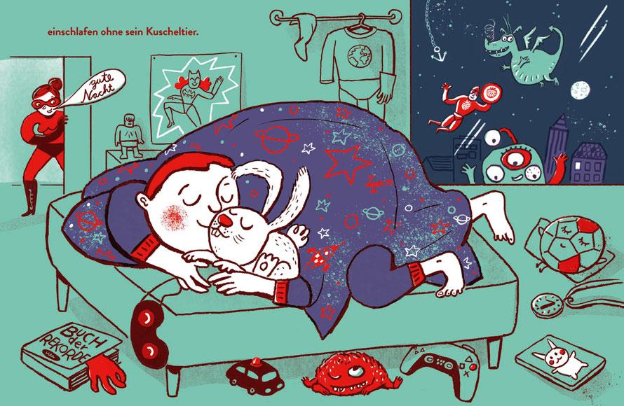 Eine Gutenachtgeschichte für Superhelden.Der stärkste Mann der Welt ist echt stark! Er kann Bäume ausreißen, Eisen durchbeißen und Berge umschmeißen. Sogar ganze Meere aussaufen, feurige Drachen wegschnaufen und Weltrekord laufen. Und er kann noch viel mehr. Er ist ein echter Superheld. Aber eines kann er nicht. Auf keinen Fall! Einschlafen ohne sein Kuscheltier. Und das hat er sicher mit vielen anderen kleinen starken Helden gemein. Ein knallbunt illustriertes Bilderbuch mit einer fröhlich gereimten Gutenachtgeschichte für starke Kinder.