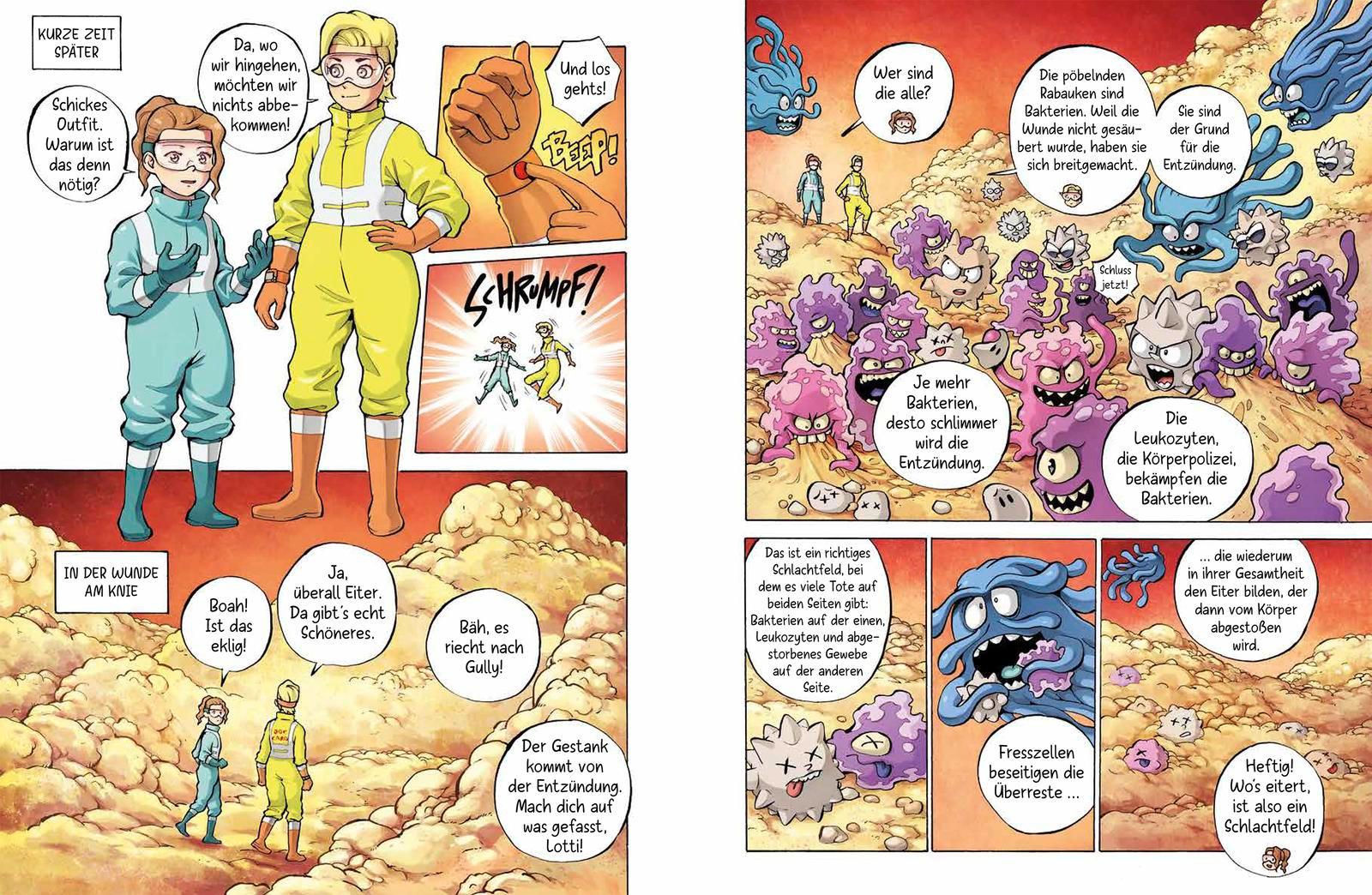 Doc Caros spannende Reise in unseren Körper!Doc Caro wird zu einem Unfall gerufen - ein Mädchen hat sich im Skate-Park verletzt. Doc Caro kann die Platzwunde versorgen und begibt sich gemeinsam mit Momo und den Leser*innen auf eine faszinierende Reise in den Körper der Verletzten ... Was passiert, wenn wir bluten, ist das gefährlich und wie kann man helfen? Diese und weitere Fragen rund ums Thema Wundheilung beantwortet Doc Caro mitreißend und mit viel Humor!Ein Must-have nicht nur für Fans - Mit Tipps rund um Erste Hilfe und Wundversorgung!
