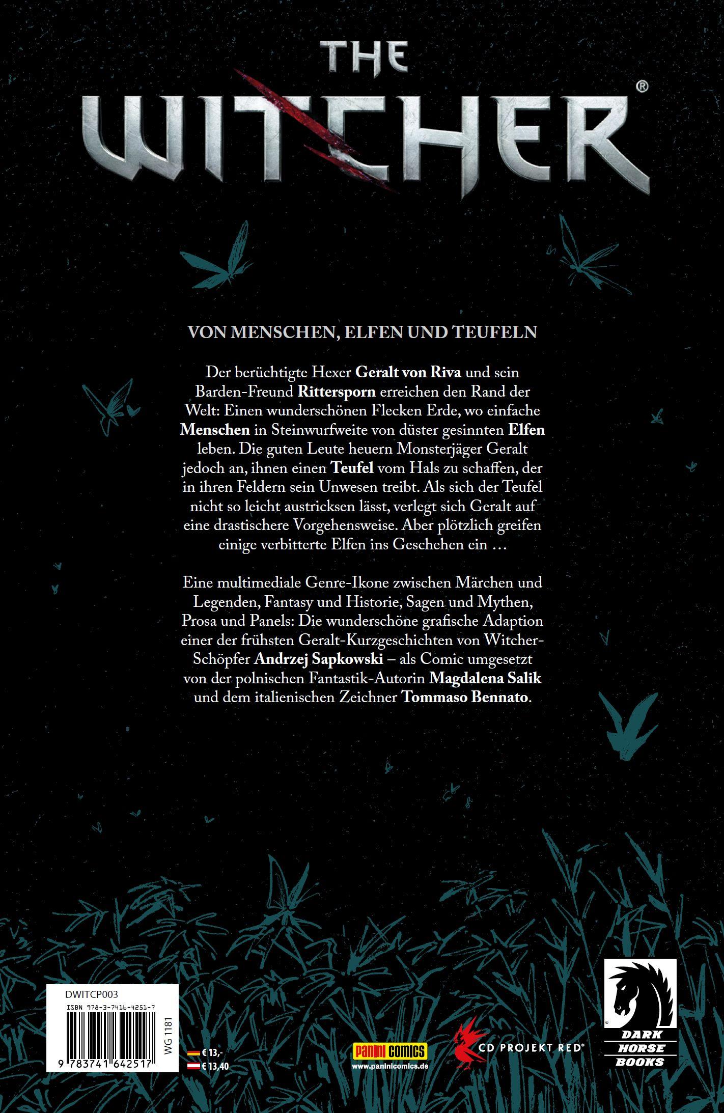 Eine multimediale Genre-Ikone zwischen Märchen und Legenden, Fantasy und Historie, Sagen und Mythen, Prosa und Panels: Die wunderschöne grafische Adaption einer der frühsten Geralt-Kurzgeschichten von Witcher- Schöpfer Andrzej Sapkowski - als Comic umgesetzt von der polnischen Fantastik-Autorin Magdalena Salik und dem italienischen Zeichner Tommaso Bennato.