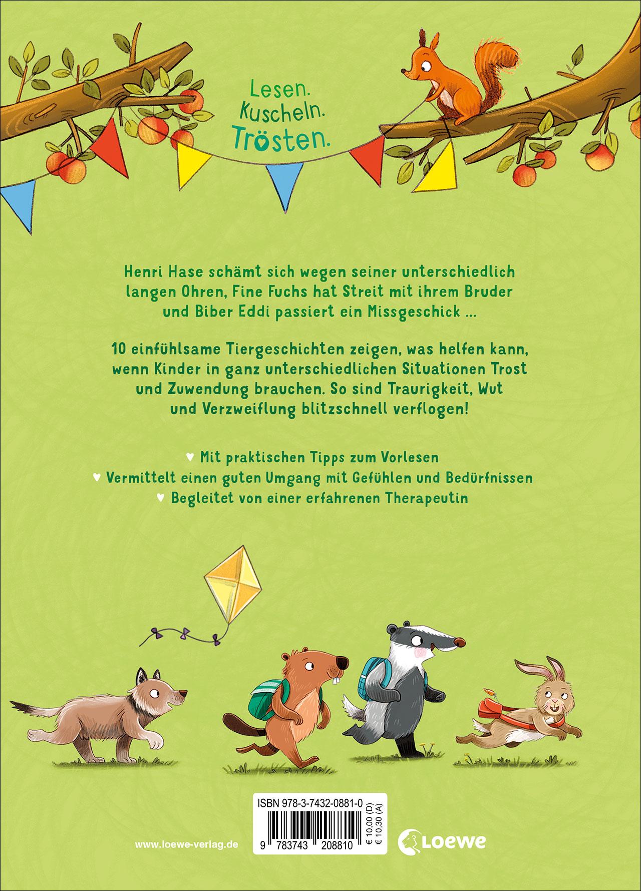 Lesen, kuscheln, entspannen Der kleine Hase Henri ist verzweifelt - er hat zwei unterschiedlich lange Ohren und schämt sich deswegen. Opa Hase tröstet ihn: Jeder ist anders und gut so, wie er ist. Jetzt merkt Henri, dass auch seine Freunde Unsicherheiten haben. Gemeinsam begreifen sie, dass Unterschiede uns einzigartig und besonders machen. Seit ihre beste Freundin Lina weggezogen ist, vermisst Mia Maus sie einfach schrecklich. Ob Igel Max sie trösten kann? Und was hilft Elli Eichhörnchen, wenn sie mit ihrer verletzten Pfote nicht mit den anderen Tierkindern spielen kann? 10 einfühlsame Geschichten zeigen, was helfen kann, wenn Kinder in ganz unterschiedlichen Situationen Trost und Zuwendung brauchen. So sind Traurigkeit, Wut, Verzweiflung und andere schwierige Gefühle blitzschnell verflogen!
