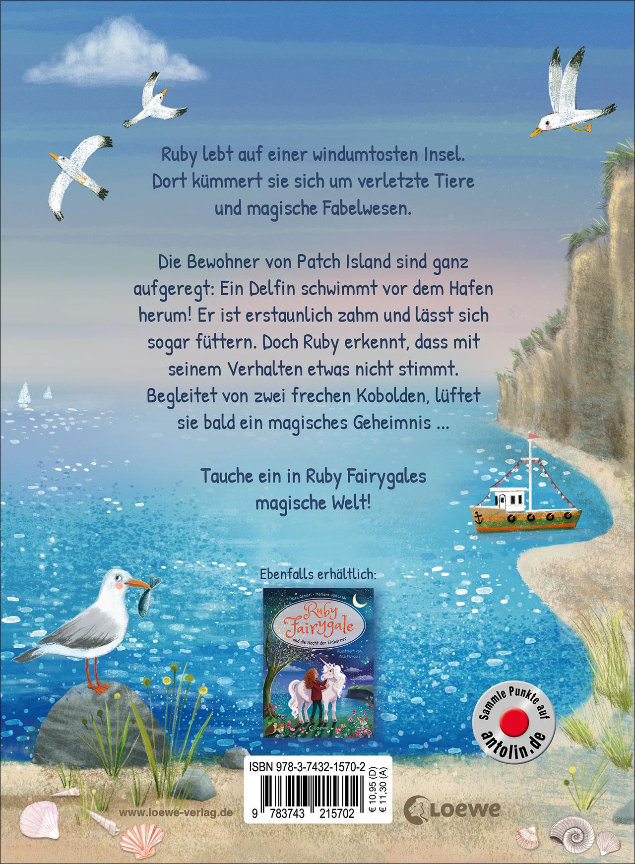 Ruby Fairygale und der Zauber des Meeres Wenn auf Patch Island etwas Merkwürdiges vor sich geht, dann sind die Kobolde nicht weit. Als Ruby frühmorgens von Giddy und Paddy aus dem Schlaf gerissen wird, ist ihr daher klar, dass etwas passiert sein muss. Doch dieses Mal ist es kein Drachenbaby und kein verlorener Topf Gold. Ein Delfin hat sich in die Bucht verirrt und verhält sich sehr merkwürdig. Welches Geheimnis wohl dahintersteckt? Tauche ein in Ruby Fairygales magische Welt!
