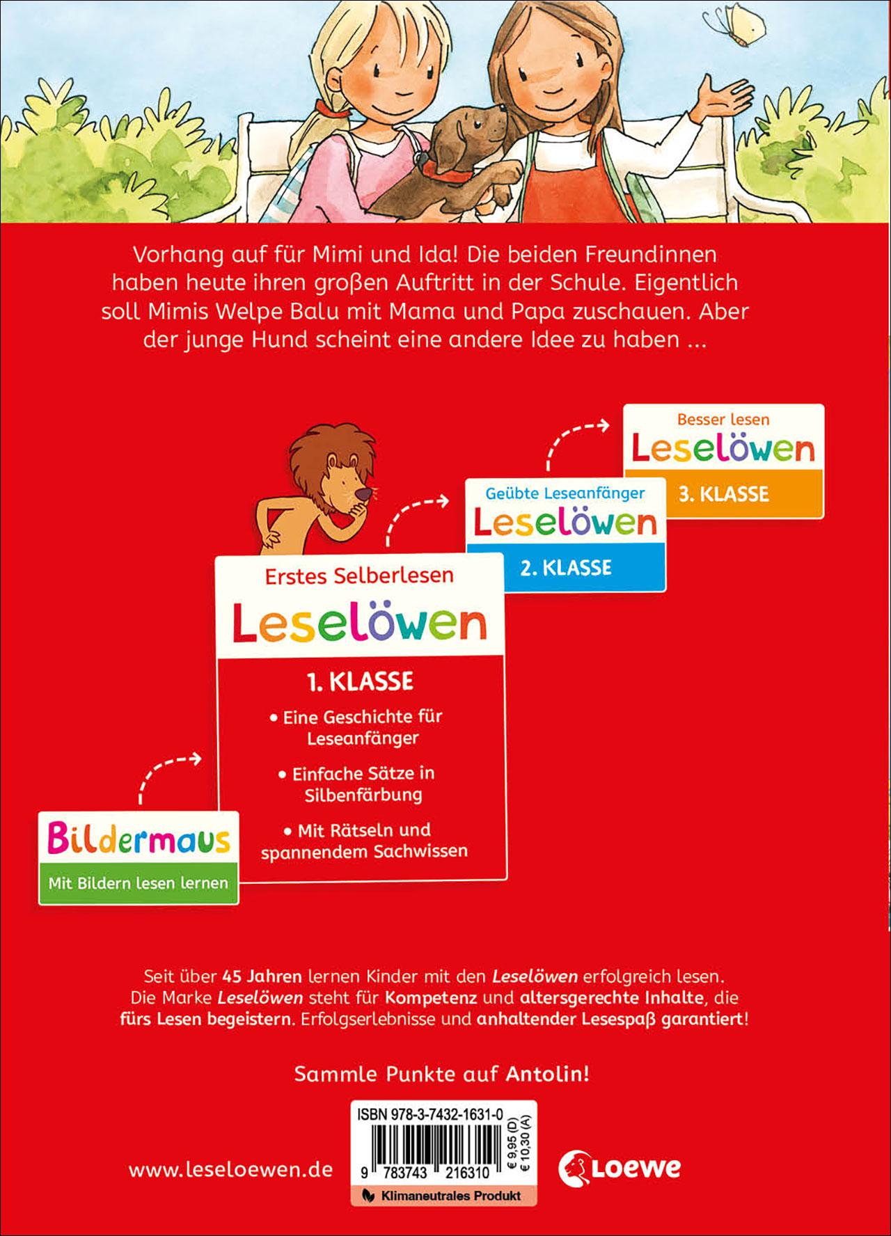 Das Buch ist bei deiner Buchhandlung vor Ort und bei vielen Online-Buchshops erhältlich! Vorhang auf für Mimi und Ida! Die beiden Freundinnen haben heute ihren großen Auftritt in der Schule. Eigentlich soll Mimis Welpe Balu mit Mama und Papa zuschauen. Aber der junge Hund scheint eine andere Idee zu haben ... Schenken Sie Ihrem Kind das bewährte Erfolgskonzept zum Lesenlernen