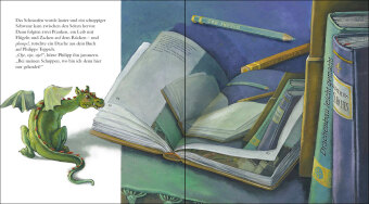 In einer zauberhaften Mondnacht springt plötzlich ein kleiner Drache aus Philipps Buch. Ein grimmiger Ritter ist hinter ihm her und sofort steckt auch Philipp mittendrin in der Verfolgungsjagd.