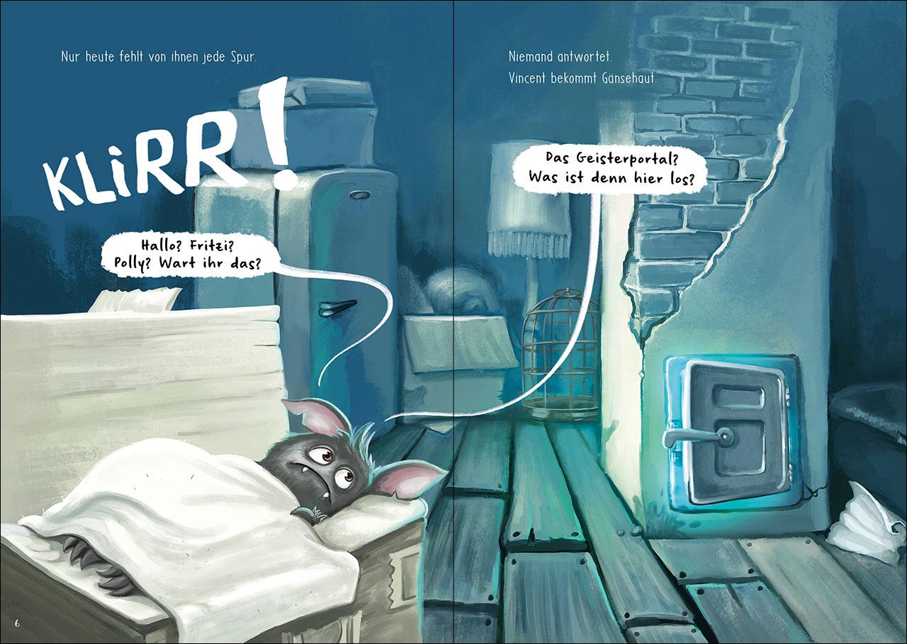 Vincents Geheimnis wird gelüftet! Puh! Auch wenn es Vincent ziemlich schwer fällt: Er muss den anderen endlich gestehen, dass er in der Geisterwelt einen schrecklichen Fehler begangen hat. Doch zum Glück haben seine Freunde eine geniale Idee: Wenn sie den gefährlichen Geisterwelt-Schurken Dr. Miez schnappen, wird Vincent seine Strafe bestimmt erlassen! Entschlossen ziehen die Freunde los - direkt zum unheimlichen Schloss mitten im Wald. Ob es ihnen gelingt, den gruseligen Wissenschaftler dort zu überlisten? Ein schaurig-spannendes Abenteuer voller Humor! Die beliebte Fledermaus Vincent aus Sonja Kaiblingers Scary Harry -Büchern flattert in ihr viertes, spannendes Abenteuer ihrer eigenen, bereits prämierten Kinderbuchreihe! Kinder ab 7 Jahren reisen mit Vincent, Fritzi und ihren Freunden, dem Lama und dem Zebra, mitten in die Geisterwelt : In seitenfüllenden, mitreißenden Illustrationen von Thomas Hussung und kurzen Texten erleben sie spannende und witzige Abenteuer voller überraschender Wendungen! Ein humorvoller Lesespaß für alle Gruselfans. 98,9% würden Loewe Wow!-Bücher weiterempfehlen (basierend auf einer Umfrage mit 1.263 Teilnehmer*innen)