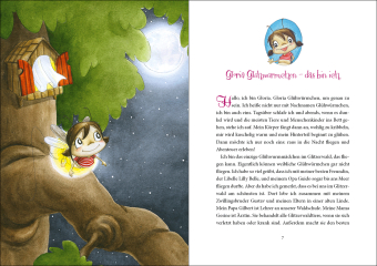 Gloria Glühwürmchen ist wieder unterwegs im nächtlichen Glitzerwald - so wie es sich für ein Glühwürmchen gehört! Aber Gloria hat nun mal ihren eigenen Kopf und möchte auch einmal den Sonnenaufgang miterleben. Außerdem ist der Gänseblümchensaft leer und nirgendwo sind mehr Gänseblümchen zu finden. Zu allem Überfluss schwankt die alte Linde bedenklich, in der Gloria mit ihrer Familie wohnt. Kann Gloria mit Hilfe ihrer Freunde all diese Abenteuer bestehen?