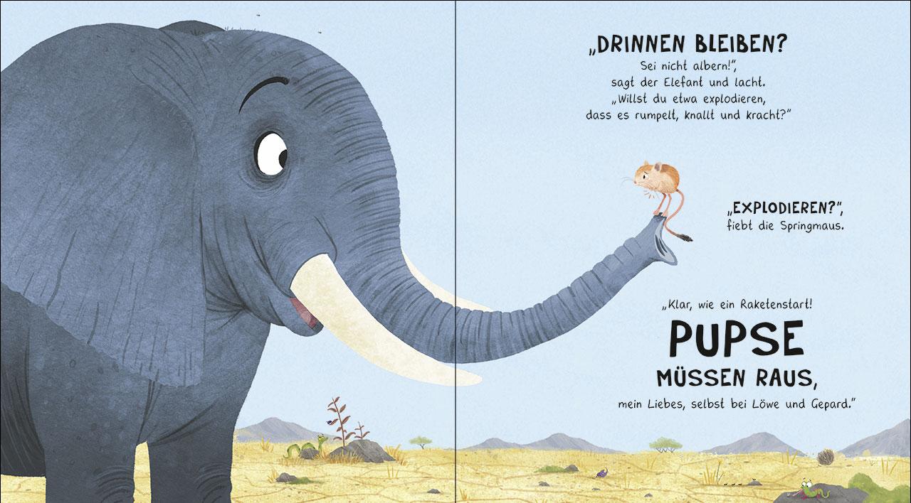 Ob Pupswölkchen, ob Furzkanone, ob mit Anlauf oder ohne, ob Elefant, ob Mensch, ob Maus - bei allen kommt's mal hinten raus!Auf einer urkomischen Reise durch das Reich der Flatulenz beobachten Elefant und Maus die unterschiedlichsten Fürze. Und so lernt die Maus, dass Pupsen die normalste Sache der Welt ist!Kühe, Hunde, Affen, Spinnen, Schlangen, Würmer, draußen, drinnen, sogar Hai und Pinguin, kennen keine Medizin. Perserkatzen, Riesendrachen, Superhelden müssen's machen ¿ und am Ende ist schon klar, dass es wieder keiner war!- Bilderbuch ab 3 Jahren über eines der beliebtesten Kinderthemen!- Lachgarantie für Kinder und Vorlesende- Augenzwinkernd gereimter Lese- und Vorlesespaß- Vermittelt eine positive Einstellung zu natürlichen Körperfunktionen- Vom Erfolgsduo der Bilderbücher Bär muss mal und Mamas Po erkenn' ich sowieso- Die beliebtesten Tiere als Identifikationsfiguren- Witzig und charmant illustriert von Mike Byrne- Das ideale Geschenk und Mitbringsel für Kinder von 3-6 Jahren- Hochwertige Hardcover-Ausgabe- Vorlesen und gemeinsames Lachen stärkt die Eltern-Kind-Beziehung