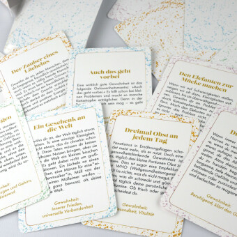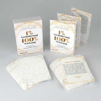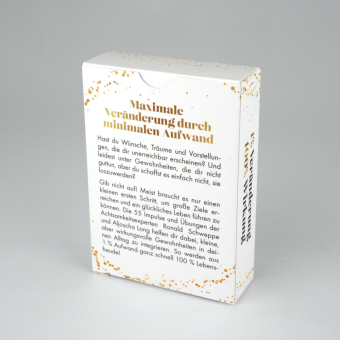 Manche Herausforderungen, Ziele oder Wünsche erscheinen unerreichbar, der Weg dorthin steinig und unüberwindbar. Meist kommt es jedoch nur darauf an, dass du anfängst, den ersten Schritt wagst und den Stein ins Rollen bringst. Dieses Kartendeck zeigt dir, wie du mit kleinen Schritten und minimalen Veränderungen jedes Ziel erreichen kannst. Ob im beruflichen oder privaten Umfeld, ob sportliche Ziele oder persönliche Wünsche mit den einfachen Strategien der Achtsamkeitsexperten Ronald Schweppe und Aljoscha Long gelingt dir jedes Vorhaben. Die 55 Micro Habits sorgen für mehr Erfolgserlebnisse und Glücksgefühle in deinem Alltag!