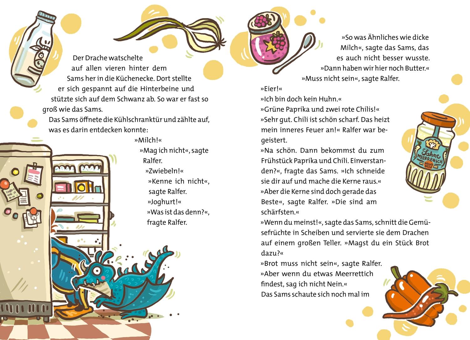 Nichts darf man! Den ganzen Tag muss das Sams sich langweilen, während Herr Taschenbier auf der Arbeit ist. Draußen beobachtet es, wie ein paar Kinder einen Drachen steigen lassen. So was hätte das Sams auch gern. Weil der Drachenladen aber geschlossen ist, benutzt das Sams ausnahmsweise die verbotene Wunschmaschine. Und plötzlich steht vor ihm ein echter kleiner Drache. Ein lustiges Versteckspiel beginnt, denn natürlich darf Frau Rotkohl auf keinen Fall etwas erfahren. Auffällig ist nur, dass alle plötzlich so viel Glück haben. Denn das Sams hat tatsächlich einen chinesischen Glücksdrachen herbeigewünscht. Die zehnte Sams-Geschichte von Paul Maar mit lustigen Bildern von Nina Dulleck ("Die Schule der magischen Tiere").Mehr kann sich niemand wünschen: Sams Band 10 illustriert von Nina Dulleck.