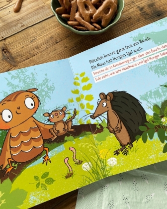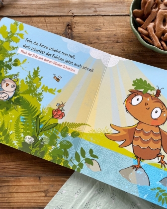 Die kleine Eule sitzt im Wald, es ist trüb und ihr ist kalt... In dem neuen Pappbilderbuch mit der kleinen Eule können kleinste Leser_innen die Eule bei ihrem Tag begleiten und ihr dabei helfen, wieder warm zu werden. Durch Pusten, Klopfen und Klatschen wird mit den beliebten Figuren interagiert. Und am Ende gibt es ein großes Schmatzkonzert im Eulen-Nestchen!