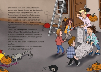 Die Zombies sind los! Halloween in der Escape School: Die Schülerinnen und Schüler feiern in gruseligen Kostümen und mit dabei sind natürlich auch die Leser_innen. Doch was ist das? Plötzlich stürmen echte Zombies die Party auf der Suche nach etwas Essbarem. Jetzt gilt es, die schrecklichen Kreaturen wieder loszuwerden, bevor sie noch Appetit auf Menschen entwickeln. Wer hilft mit?