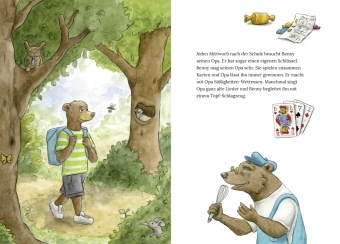 Bennys Opa macht seit einiger Zeit seltsame Dinge: Er verlegt allerlei Krams, erfindet neue Wörter und stellt sogar seine Schuhe in den Kühlschrank! Und wenn Benny ihn darauf anspricht, wird Opa sauer oder ganz traurig. Aber Benny versteht inzwischen, was los ist: Opa Bär hat eine Krankheit, bei der er vieles vergisst. Doch auch wenn es manchmal nicht leicht ist, schaffen die beiden es immer wieder gemeinsam zu lachen.