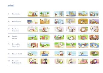 Der kleine Siebenschläfer hat eine ganze Menge zu tun: Er besucht mit seinen Eltern den Zoo, geht mit seiner Mama einkaufen oder zum Kinderarzt Doktor Otter; er macht ein Picknick im Park oder spielt mit dem kleinen Hund Pucki, verbringt einen herrlichen Tag am Strand und bekommt Besuch von seiner netten Babysitterin..