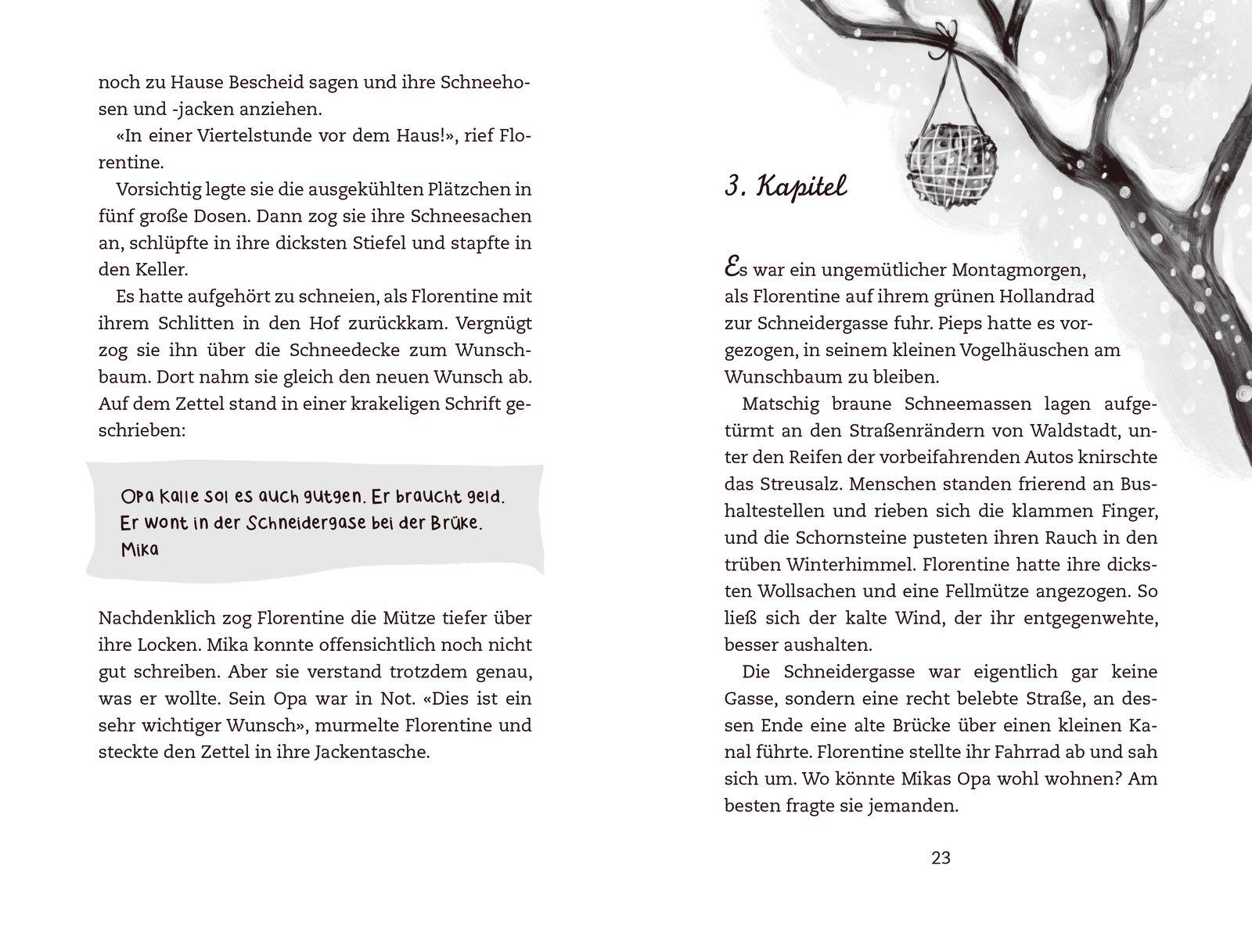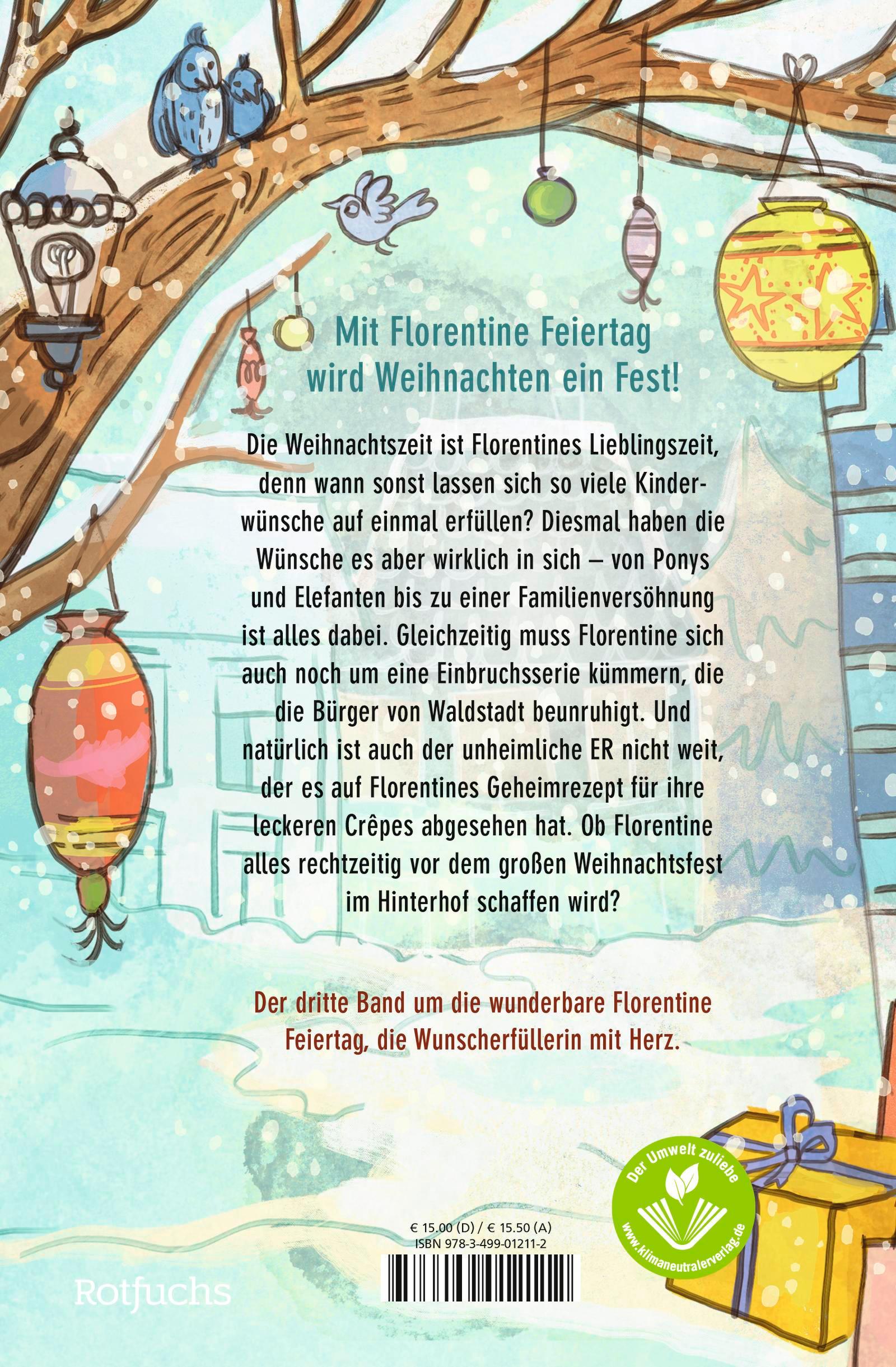Die Weihnachtszeit ist die Lieblingszeit von Florentine Feiertag, denn wann sonst lassen sich so viele Kinderwünsche auf einmal erfüllen? Und Wünsche erfüllen ist nun mal Florentines Leidenschaft. Diesmal haben die Wünsche es aber wirklich in sich - von Ponys und Elefanten über Trampoline bis hin zu einer Familienversöhnung ist alles dabei. Gleichzeitig muss Florentine sich auch noch um eine Einbruchsserie kümmern, die den kleinen Ort Waldstadt beschäftigt. Und natürlich ist auch der unheimliche ER nicht weit, der es auf Florentines Geheimrezept für ihre leckeren Crêpes abgesehen hat. Ob Florentine alles rechtzeitig vor dem großen Weihnachtsfest im Hinterhof schaffen wird?Mit Illustrationen von Annabelle von Sperber nach den Originalen von Nina Dulleck