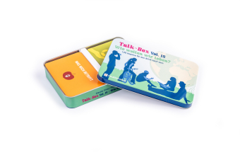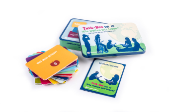 "Die beliebte Kommunikationsspielreihe geht in die 18. Runde, die Grundidee ist dabei so simpel wie effektiv zugleich: Menschen werden durch spannende, kluge und vor allem klug gestellte Fragen und Impulse herausgefordert, miteinander ins Gespräch zu gehen. Beeindruckend ist dabei, dass es die Macherinnen Claudia Filker und Hanna Schott gemeinsam mit der Grafik-Designerin Almut Schweitzer-Herbold schaffen, selbst kontroverse Themen auf angenehme, konstruktive Weise einzubeziehen. In der neuesten Ausgabe der Box geht es um unsere Zukunft: wie stehen wir zu Themen wie dem Klimawandel? Wo hakt es noch bei der Gleichberechtigung zwischen Frauen und Männern? Welche Werte sind den verschiedenen Generationen wichtig und wie bekommen wir die alle unter einen Hut? Einsetzbar ist die Box besonders schön bei Männerevents, weil sie dafür sorgt, dass jeder mal zu Wort kommt und man(n) so erkennen darf, welches Potential in den anderen Teilnehmern steckt; durch die kompakte Größe ist sie aber a