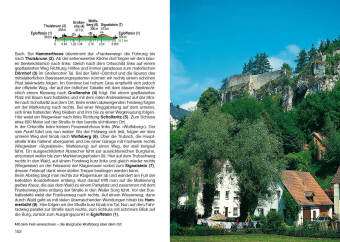 Die Auswahl der Touren reicht von kurzen Wanderungen bis zu ausgedehnten Tagesunternehmungen. Bei vielen Touren gibt es Extra-Vorschläge für gemütliche, kurze Spaziergänge. In engen Tälern wandert man an munter dahinplätschernden Flüssen und Bächen entlang, an denen zum Teil noch alte Mühlen klappern. Aus bewaldeten Hängen schimmern hell und hoch die Felsen. Und in kleinen Fachwerkdörfchen lädt nach der Wanderung das nächste Dorfgasthaus, vielleicht sogar mit eigener Brauerei, zu einer kräftigen Brotzeit und einem typisch süffigen fränki