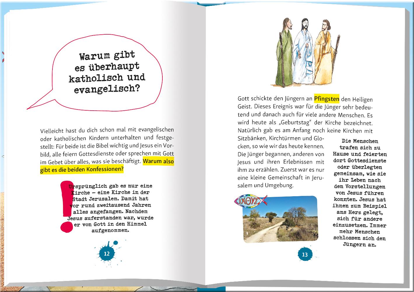 "Warum bekreuzigen sich die Katholiken", und "Warum gibt es in den evangelischen Kirchen so wenig Bilder und Gemälde?" Stephan Sigg greift authentische Fragen auf, die sich die Kinder tatsächlich tagtäglich stellen. In lebendigen Worten und mit ansprechenden Illustrationen vermittelt er die wichtigsten Gemeinsamkeiten und Unterschiede zwischen katholischer und evangelischer Kirche. Dieses christliche Kinderbuch geht über die bloße Wissensvermittlung hinaus: So entdecken junge Leser und Leserinnen ab 8 die ganze Vielfalt des Glaubens.
