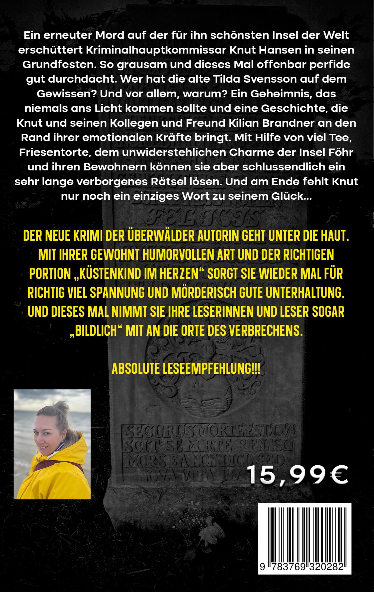 Ein erneuter Mord auf der, für ihn schönsten Insel der Welt erschüttert Kriminalhauptkommissar Knut Hansen in seinen Grundfesten. So grausam und dieses Mal offenbar perfide gut durchdacht. Wer hat die alte Tilda Svensson auf dem Gewissen? Und vor allem, warum? Ein Geheimnis, das niemals ans Licht kommen sollte und eine Geschichte, die Knut und seinen Kollegen und Freund Kilian Brandner an den Rand ihrer emotionalen Kräfte bringt. Mit Hilfe von viel Tee, Friesentorte und dem unwiderstehlichen Charme der Insel Föhr und seinen Bewohnern können sie aber schlussendlich ein sehr lange verborgenes Rätsel lösen. Und am Ende fehlt Knut nur noch ein einziges Wort zu seinem GlückDer neue Krimi der Überwälder Autorin geht unter die Haut. Mit ihrer gewohnt humorvollen Art und der richtigen Portion Küstenkind im Herzen sorgt sie wieder mal für richtig viel Spannung und mörderisch gute Unterhaltung. Und dieses Mal nimmt sie ihre Leserinnen und Leser sogar bildlich mit an die Orte des Verbrechens. Absolute Leseempfehlung!!!