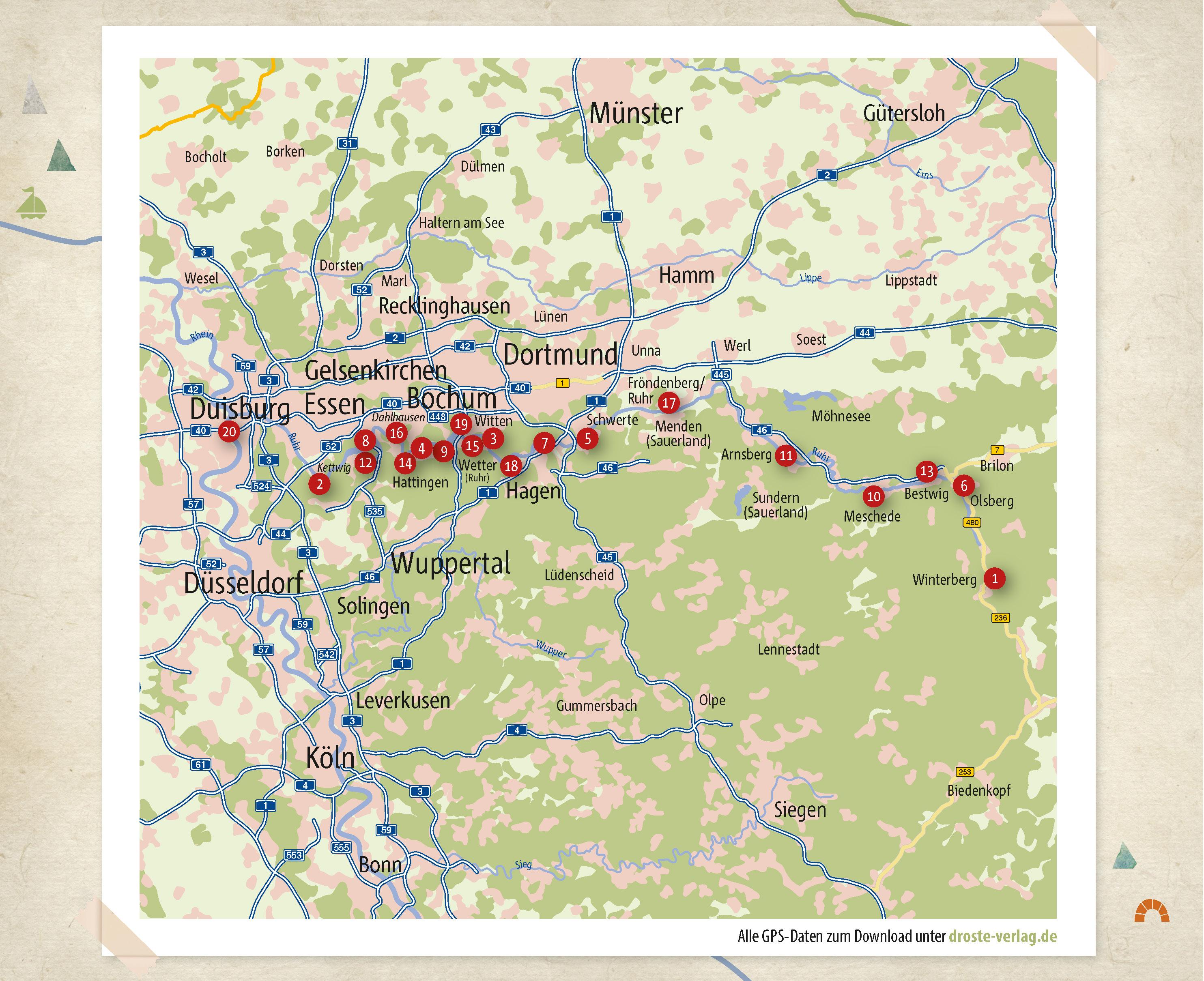 Von der Quelle bei Winterberg bis zur Mündung in den Rhein bietet die Ruhr ein faszinierendes Kontrastprogramm. Entlang der Lebensader von Sauerland und Ruhrgebiet geht es auf abwechslungsreichen Steigen hoch hinaus zu historischen Burgen, wo der Blick ins Ruhrtal die Wanderseele mit grandiosen Aussichten belohnt. Andernorts garantieren märchenhafte Bachläufe und verwunschene Waldpfade erholsame Auszeiten. So geht Ruhrlaub vom Feinsten!