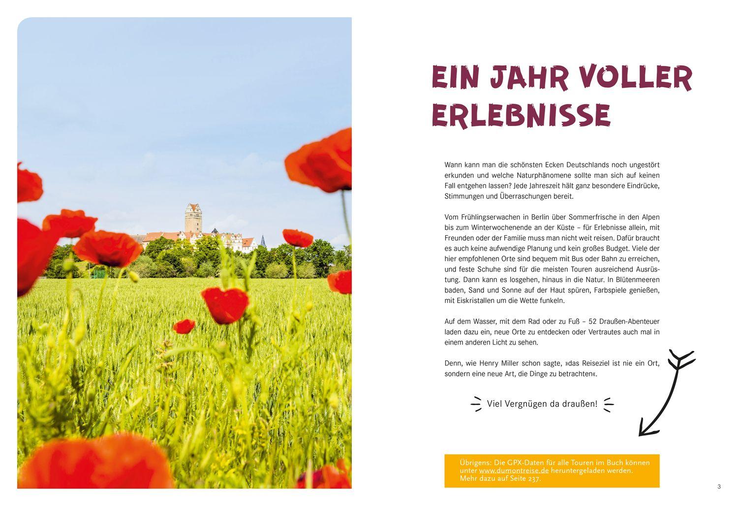 Ein Jahr voller Erlebnisse: Wann kann man die schönsten Ecken Deutschlands noch ungestört erkunden und welche Naturphänomene sollte man sich nicht entgehen lassen? Vom Frühlingserwachen in Berlin, über Sommerfrische an der Mecklenburgischen Seenplatte und Herbsternte in der Pfalz bis zu Winterausfahrten im Spreewald: 52 jahreszeitliche Eskapaden führen zu überraschenden Erlebnissen und Orten vor der Haustür. Also schnell Wanderschuhe an, Fahrrad oder Kanu raus und ab nach draußen - unwiderstehliche Abenteuer warten. Allein, mit Freunden oder der Familie - es ist so einfach, mehr zu erleben als das Bekannte.