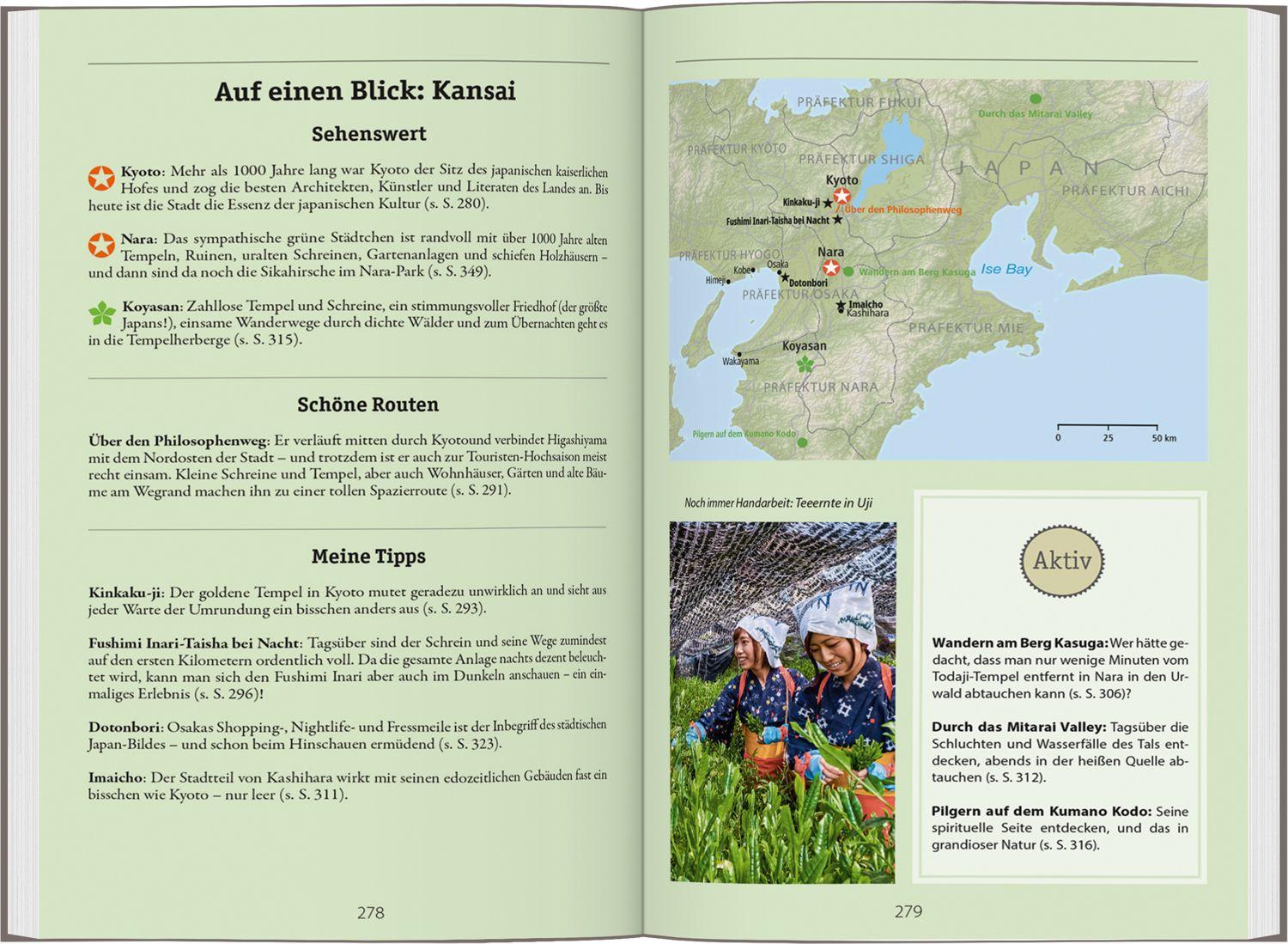 Zu Gast im Land des Lächelns.SCHNEEBEDECKTE VULKANE, HEISSE QUELLEN, goldglänzende Schreine und neonbunte Megacitys - Japan ist ungeheuer vielfältig. Dieses Reise-Handbuch bündelt die schönsten Erlebnisse: Sie lernen Tokios schrille Popkultur kennen, genießen die Stille in Kyotos Zengärten und tauchen in Himeji in die Welt der Samurai ein. Auf uralten Pilgerpfaden folgen Sie den Spuren buddhistischer Mönche, entdecken entlegene Tempel inmitten verwunschener alter Wälder und entspannen anschließend im heißen Onsen. Autorin Françoise Hauser erweckt mit spannenden Geschichten die nüchternen Fakten zum Leben. Sie erklärt kulturelle Besonderheiten und sorgt dafür, dass Ihnen im Land des Lächelns nie das Lachen vergeht.- Einfache Vorbereitung mit allen wichtigen Infos zu Anreise, Verkehr, besten Reisezeiten und vielem mehr.- Praktische Planungshilfe mit Tourenvorschlägen für Reisen durch einzelne Regionen und das ganze Land.- Wanderungen, Radtouren und andere Aktivitäten in den schönsten Landschaften.- Umfangreiche Einführung zu Land und Leuten und informative Themenseiten mit besonderen Geschichten und Fakten.- Beste Orientierung dank herausnehmbarem Faltplan.