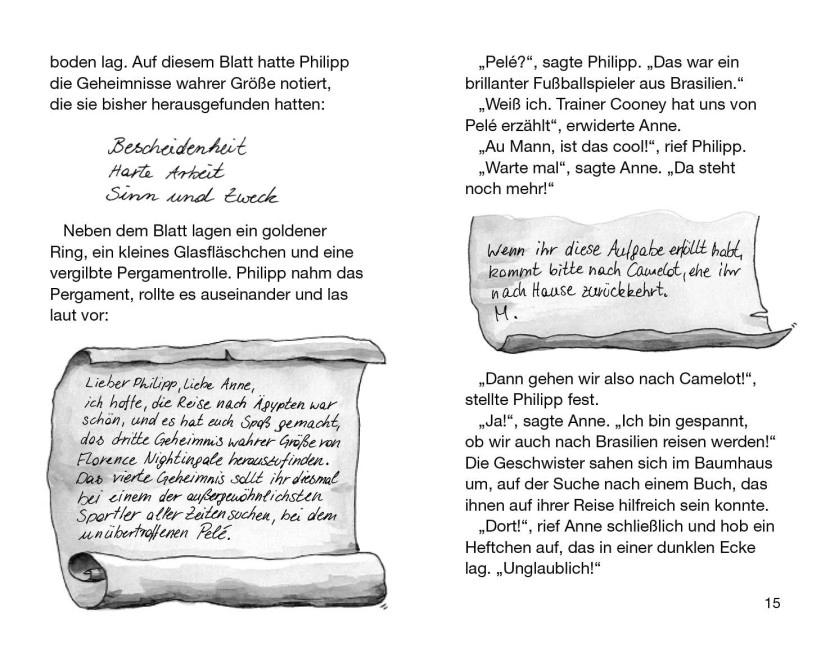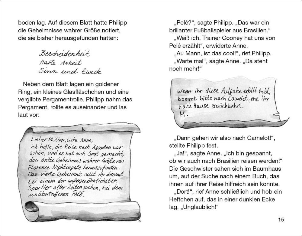 Anne und Philipp können es kaum glauben: Sie reisen zur Fußballweltmeisterschaft 1970 nach Mexico! Bestimmt wird ihnen dort der berühmte Spieler Pelé sein Geheimnis wahrer Größe verraten. Aber wie sollen sie in dem riesigen Stadion nah genug an den Fußballstar herankommen? Ihre Mission droht fast zu scheitern, doch dann entdecken Anne und Philipp das Geheimnis wahrer Größe dort, wo sie es am wenigsten erwarten ...Komm mit auf die Reise im magischen Baumhaus! Rätselhafte Abenteuer in fremden Welten und längst vergangenen Zeiten erwarten dich auch in den anderen Bänden.Die beliebte Kinderbuch-Reihe von Bestsellerautorin Mary Pope Osborne! Die Geschwister Anne und Philipp reisen mit dem magischen Baumhaus durch die Zeit. Sie erleben spannende Abenteuer, entdecken ferne Länder und lernen viele berühmte Persönlichkeiten kennen.Mehr Infos zur Reihe und tolle Extras unter: