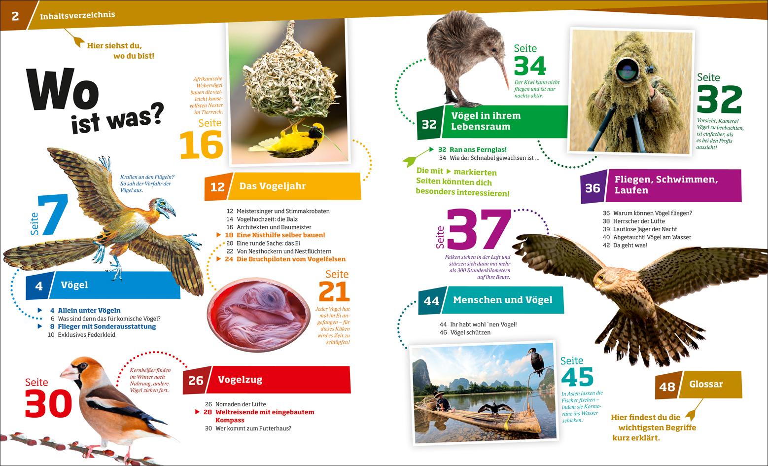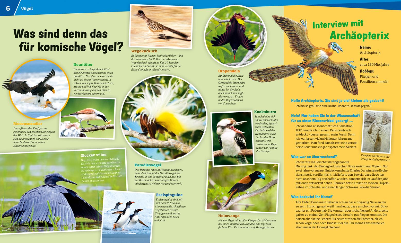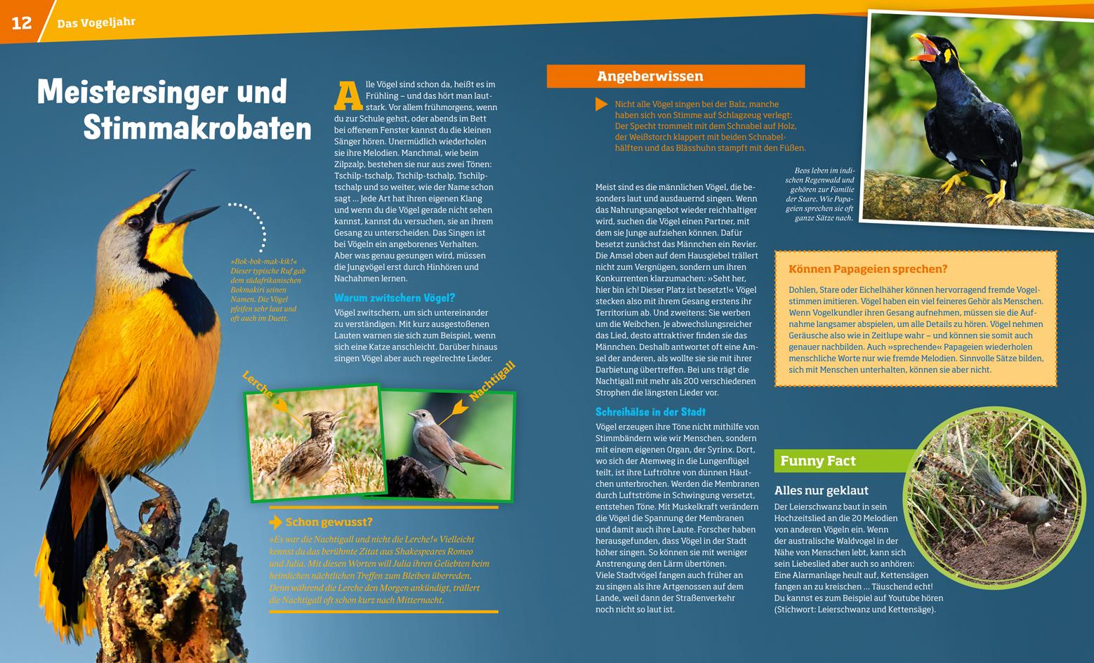 Alle Vögel sind schon da, heißt es im Frühling. Mit ihrem Gesang, ihrem Gezwitscher stecken sie ihr Territorium ab und werben um die Weibchen. Vögel sind auch Akrobaten der Lüfte! Kolibris können rückwärts fliegen, Aras nutzen ihren Schnabel als Kletterhilfe. Balz, Vogelhochzeit und Vogelzug sind legendär. WAS IST WAS besucht eine Vogelwartin und interviewt den Urvogel Archäopterix, erzählt von Meistersingern und kunterbunten Papageien, Rivalen und Revierkämpfen, vom Bau einer Nisthilfe und einem Futterhaus und wie man selbst zum Vogelbeobachter werden kann.