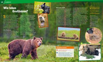 Wer das Wort "Bär" hört, hat oft gleich das Bild eines Braunbären vor Augen. Diese Bärenart ist für die meisten Menschen der bekannteste Großbär. Braunbären sind in Nordamerika, Asien und in Teilen Europas daheim. Sie leben in Wäldern oder offenem Gelände wie Kältesteppen und sogar in der Wüste. Das WAS IST WAS Sachbuch begibt sich auf die Spuren von Großbären wie Panda und Eisbär und von kletterbegabten Kleinbären wie Nasen- oder Waschbär. Wie leben Bären, eine Bärenfamilie? Wie werden kleine Bären groß? Mögen alle Bären Honig? Was unterscheidet die Winterruhe der Großbären vom Winterschlaf anderer Tiere? Wie bei WAS IST WAS üblich, werden die Texte von tollen Fotos begleitet, von "funny facts" ebenso wie von einem Exklusivinterview mit einem Bärenforscher.